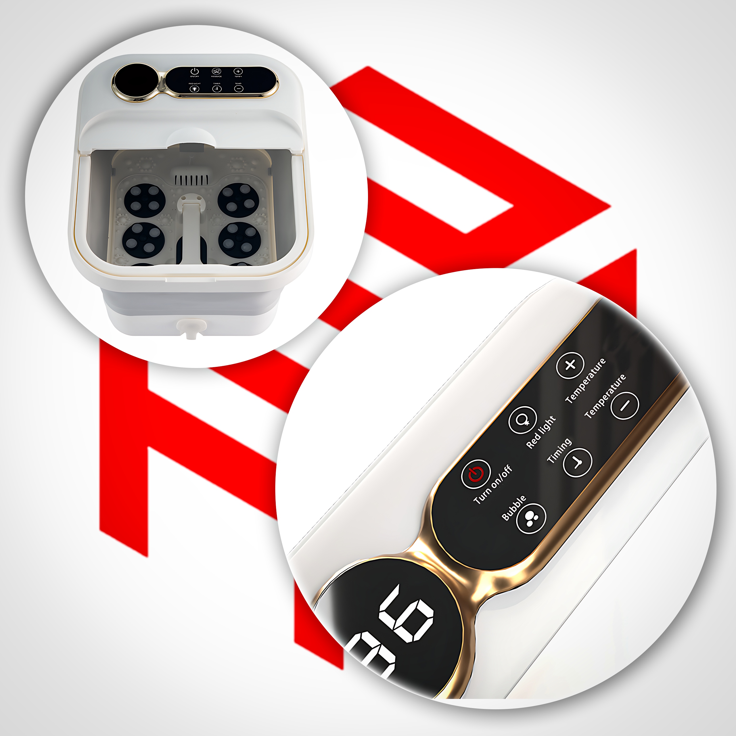 ✅ Wbudowane czerwone światło LED wspomaga efekty masażu poprzez delikatne ogrzewanie tkanek, wspomaganie krążenia krwi i dodatkowo rozluźnienie mięśni. Światło tworzy również przyjemną, relaksującą atmosferę podczas wieczornej kąpieli stóp.