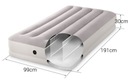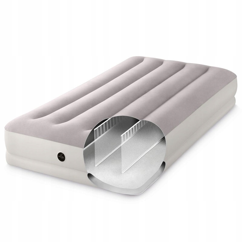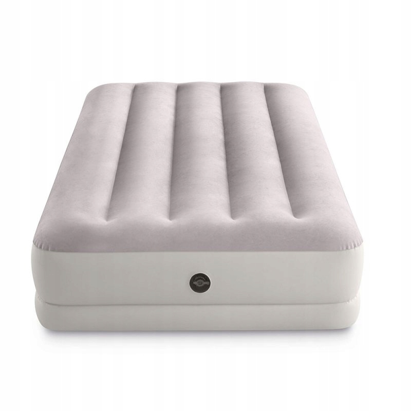 Materac welurowy INTEX o wymiarach 191x99x30 cm jest idealny dla 1 osoby. Wykonany z wytrzymałego tworzywa PVC, został pokryty przyjemnym w dotyku, wodoodpornym materiałem welurowym. Uniwersalna, jasna kolorystyka sprawia, że materac będzie pasował do każdego rodzaju wnętrza. Dzięki dołączonej do zestawu pompce, w prosty i szybki sposób napompujesz materac. Pompka zasilana jest z gniazda USB-A.