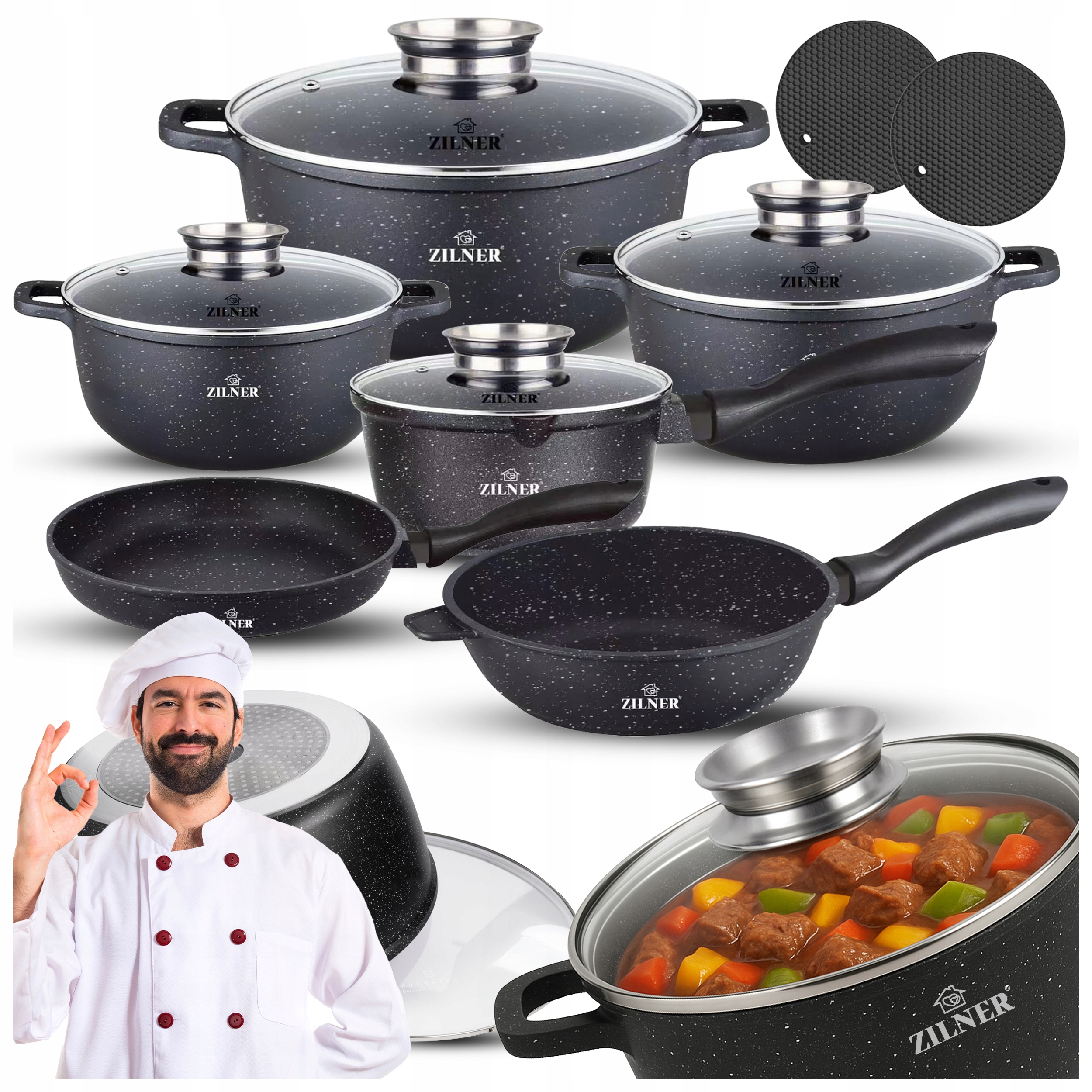 Независимо от уровня кулинарных навыков, набор кастрюль Zilner на индукционные, газовые и другие типы плит-это инвестиции в качество, стиль и удобство приготовления!