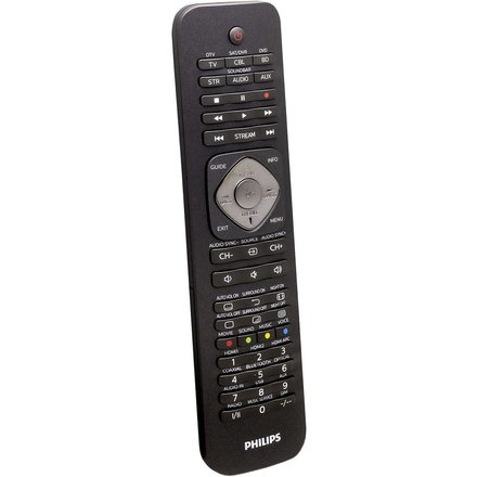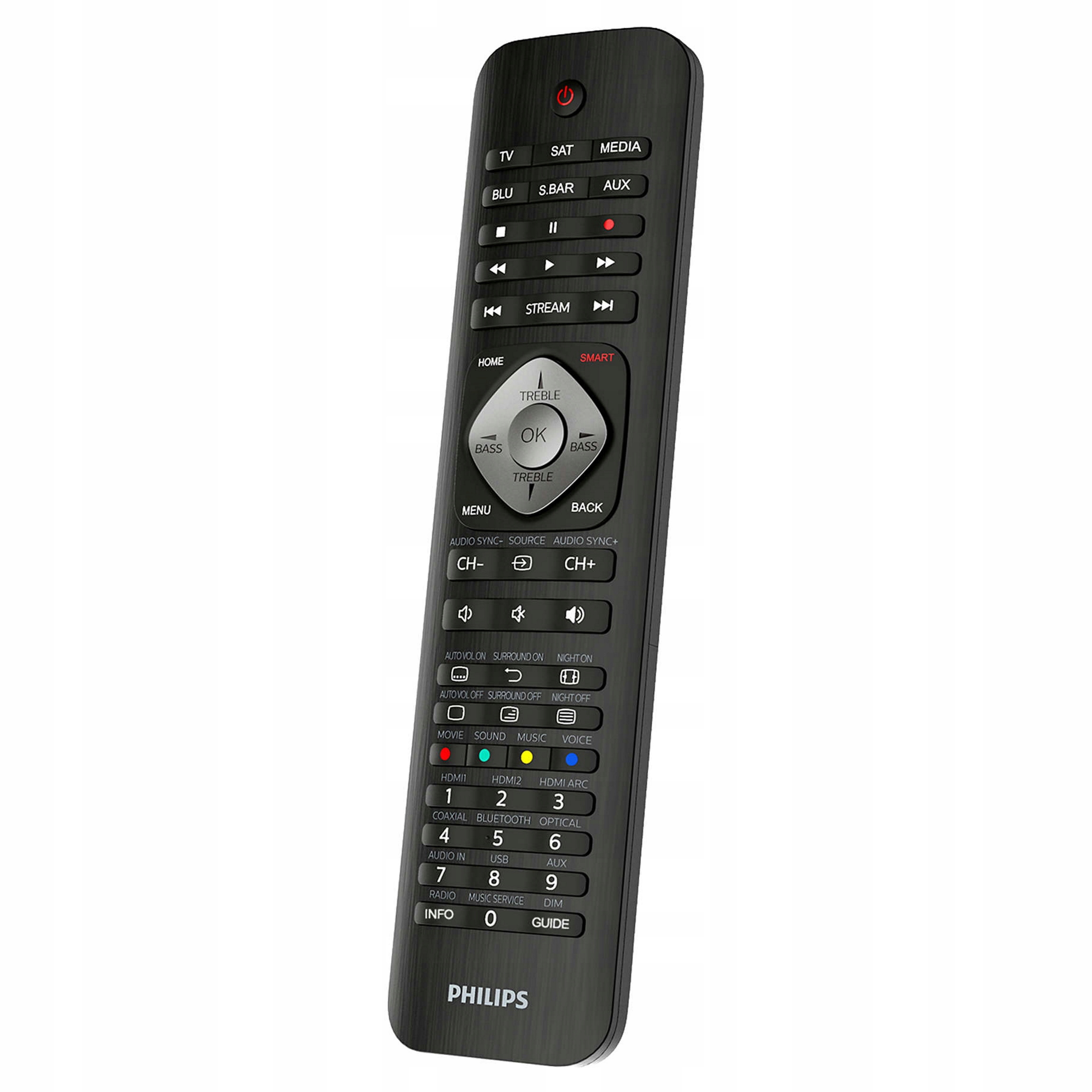 Nowoczesny i elegancki pilot 6 w 1 umożliwia łatwe sterowanie każdym urządzeniem znajdującym się w salonie. Doskonale współpracuje z zestawami typu soundbar i urządzeniami streamingowymi, takimi jak Apple TV i Roku.