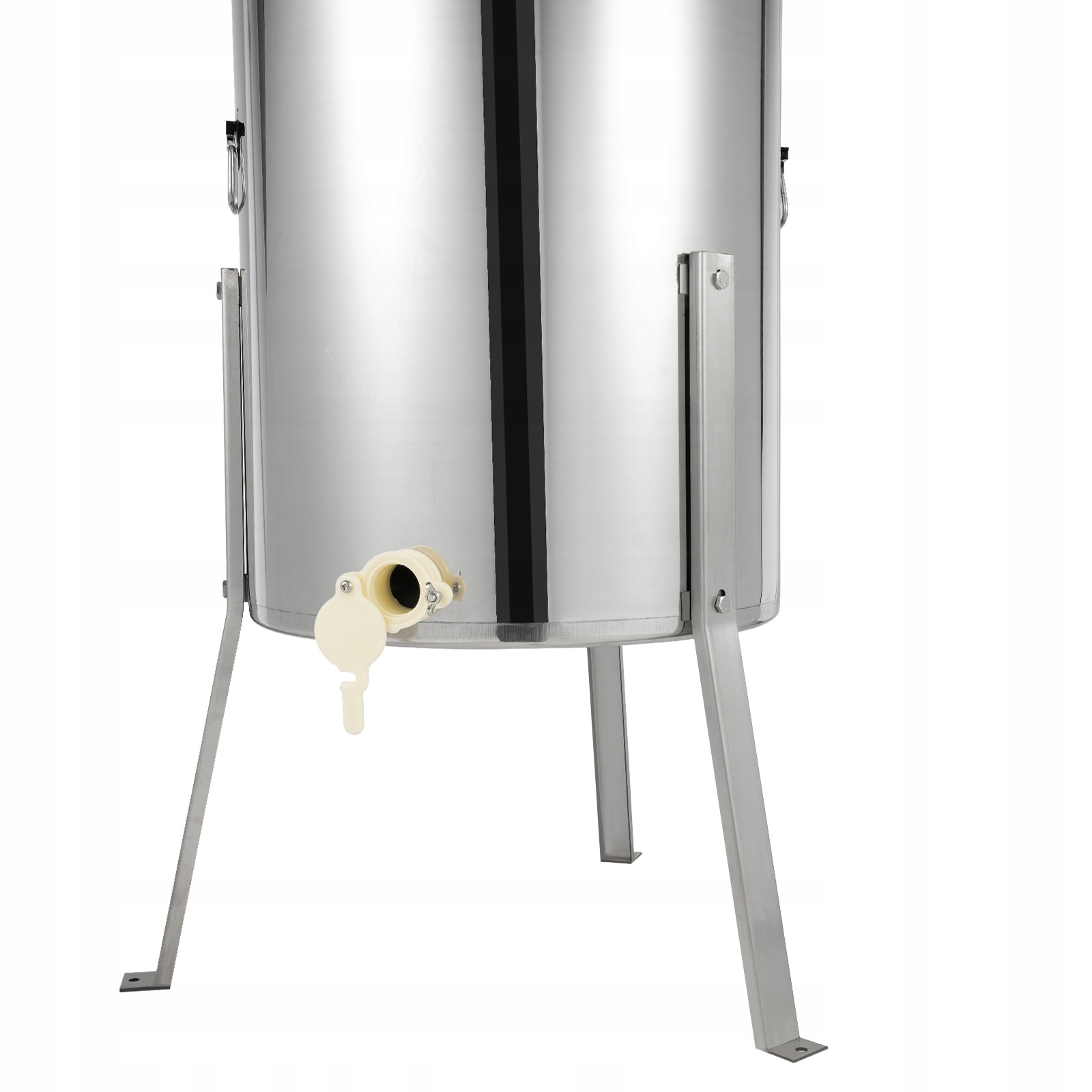 Wygoda: Zasuwa miodowa jest podniesiona o około 20 cm nad podłogę, co pomaga utrzymać miód w czystości i zapewnia miejsce na wiadro pod zasuwą. Można również postawić miodarkę bezpośrednio na blacie, bez konieczności montażu nóżek.