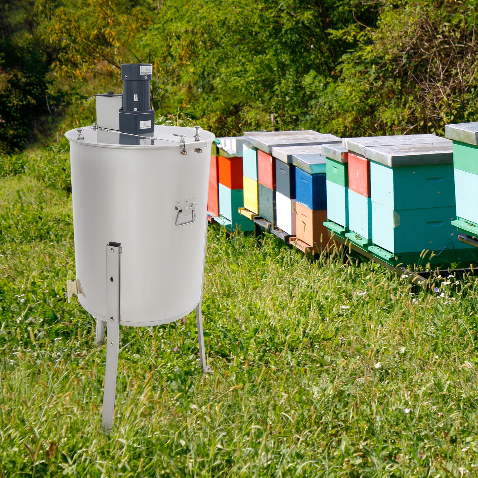 Ta elektryczna miodarka o mocy 140 W może skutecznie zwiększyć wydajność produkcji miodu. Jej całkowicie zamknięta przekładnia i półzawieszony wewnętrzny kosz zapobiegają zanieczyszczeniu miodu i zapewniają zdrowszy miód. Stożkowa konstrukcja dna wiadra i dolna klapa wlotu miodu pozwalają na maksymalny wypływ miodu z wiadra, co jest idealnym wyborem dla hobbystów lub małych pszczelarzy.