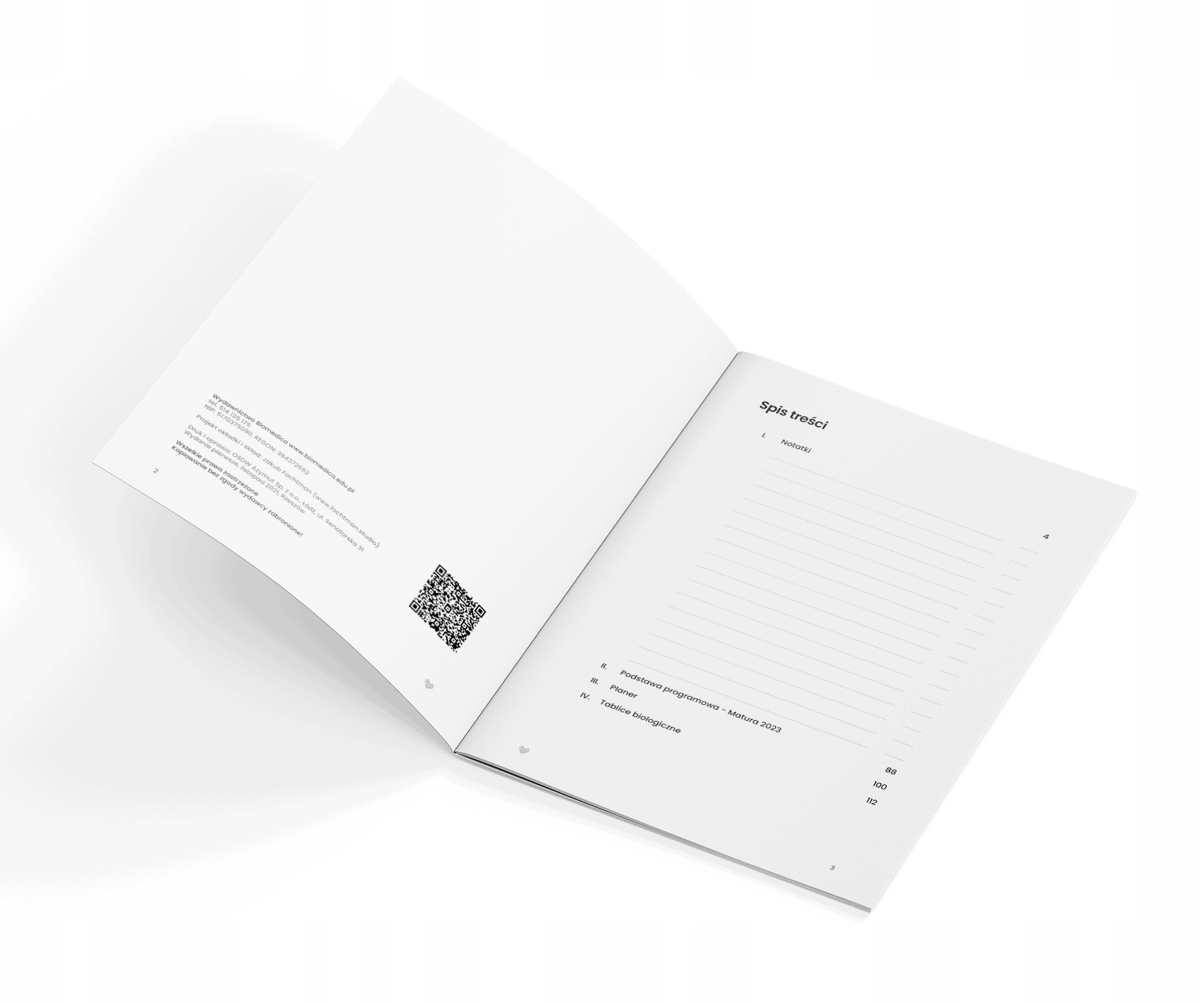 – szkielet spisu treści oraz zakładki do samodzielnego wypełnienia, które ułatwią lokalizację danego tematu lub zagadnienia w zeszycie.