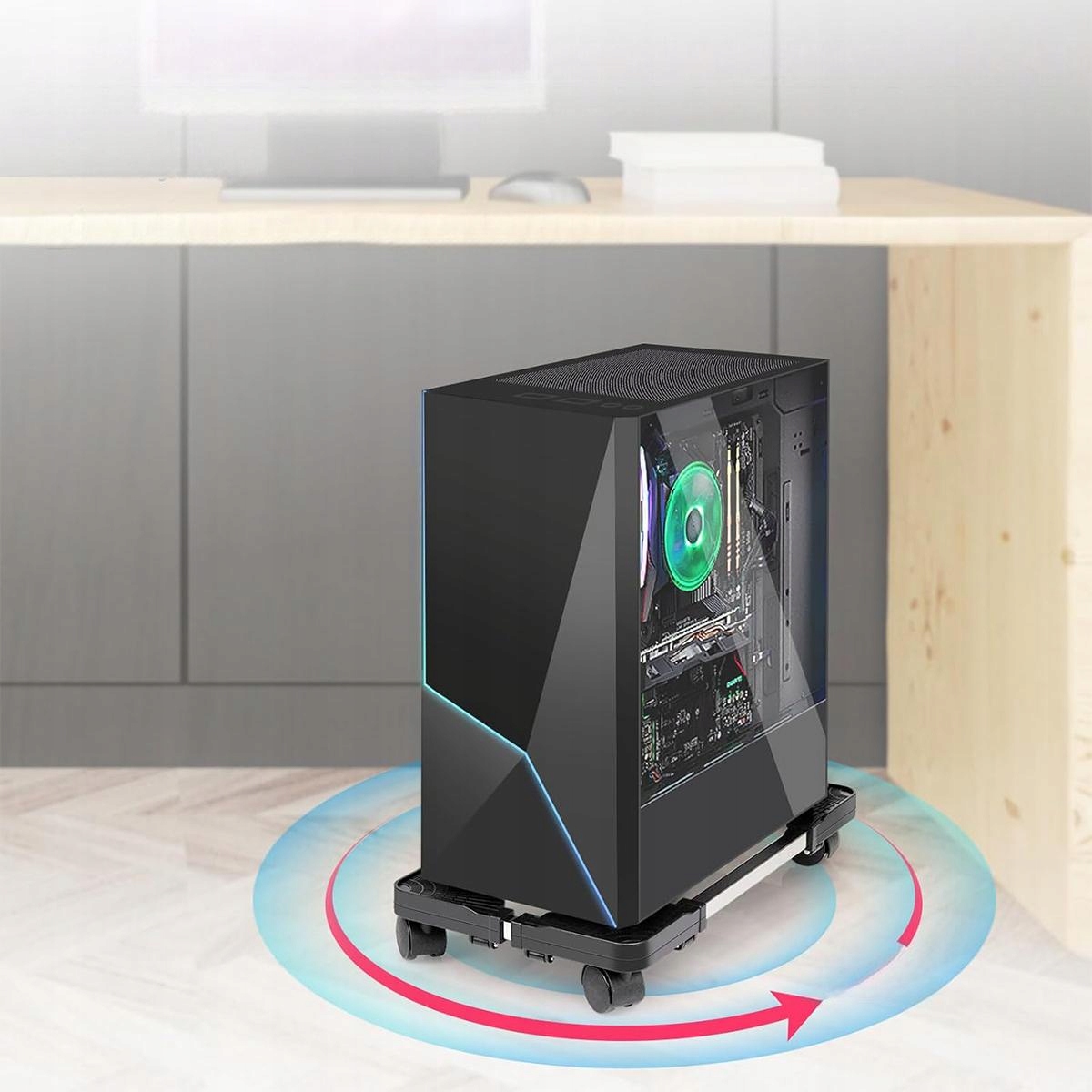- Mobilny stojak na procesor: ten stojak na procesor z kółkami obracającymi się o 360° można łatwo przesuwać, a stalową rurę można zablokować, aby stojak pozostał na miejscu, gdy jest to konieczne.