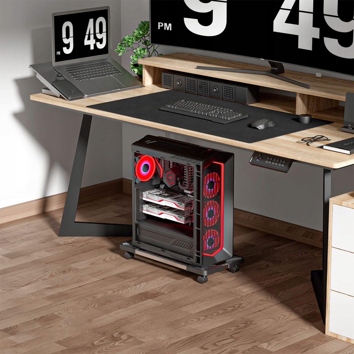 Zwiększ odległość, aby odsunąć wieżę komputera od podłogi, popraw odprowadzanie ciepła od spodu i z boków, aby utrzymać stojak komputera w czystości i zapewnić wentylację, a także zaoszczędzić miejsce na biurku, umieszczając procesor pod lub obok stołu.