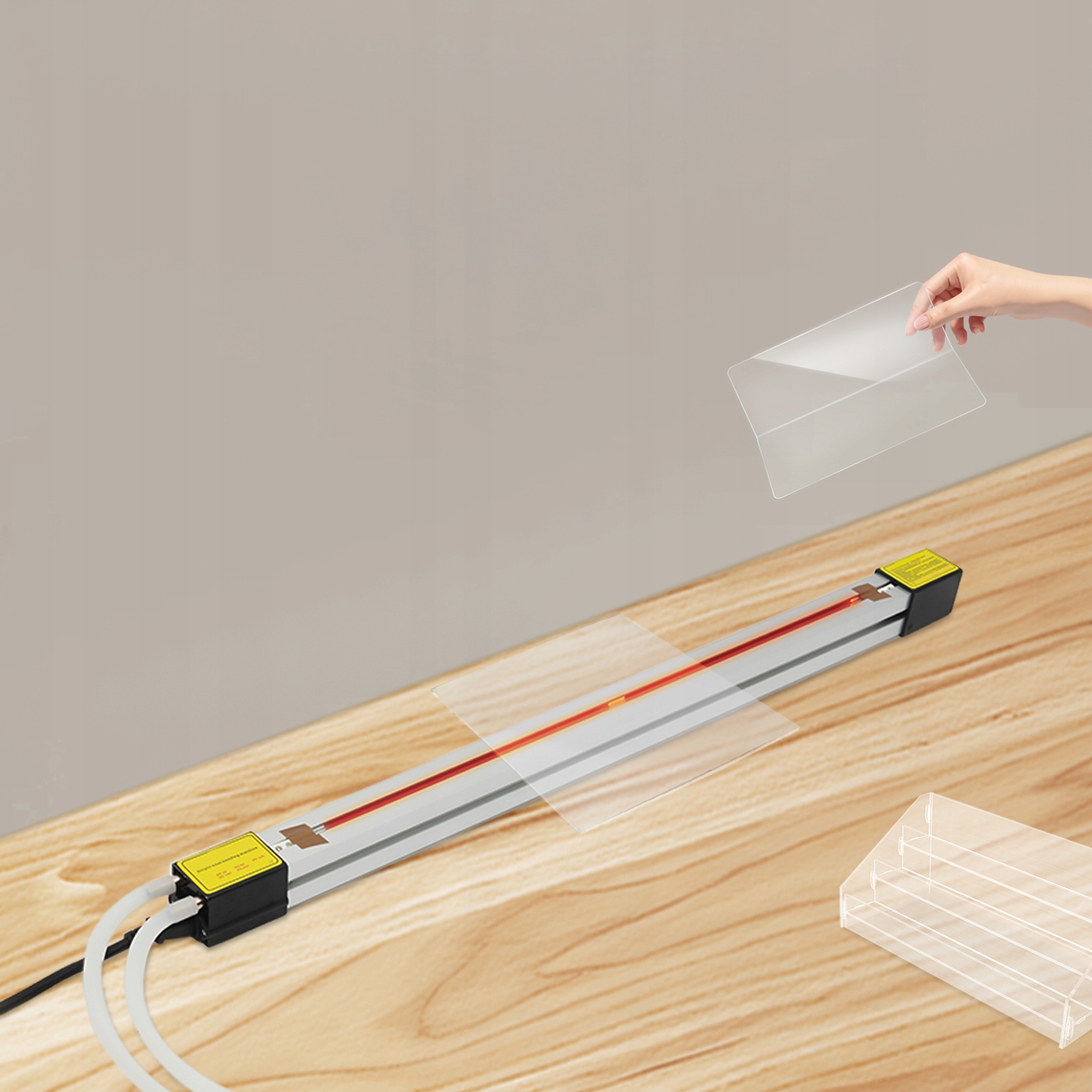 2. Jeśli grubość płyty akrylowej przekracza 6 mm, można użyć dwóch grzałek (dołączona jest tylko jedna) do jednoczesnego podgrzania górnej i dolnej części płyty lub wyciąć szczelinę w płycie.