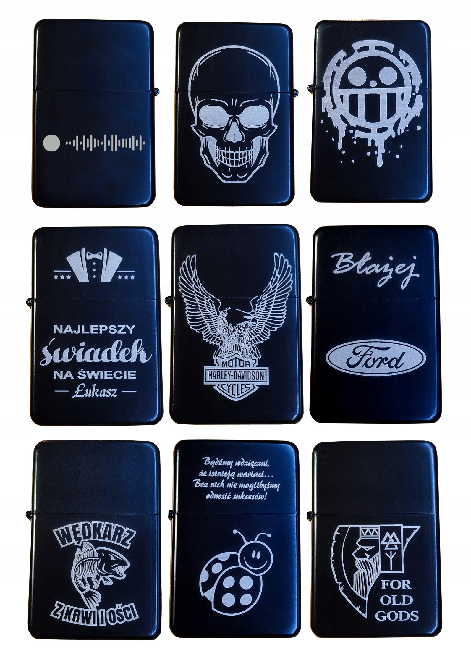 PRZYKŁADOWE REALIZACJE GRAWERUNKU ZAPALNICZKI I PAPIEROŚNICY (oczywiście kupując na tej aukcji można wygrawerować dowolny wzór)