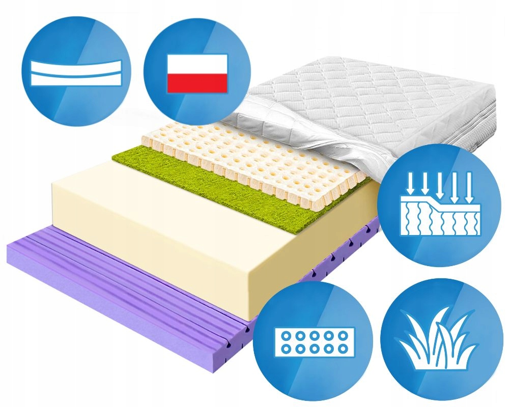 Połączenie lateksu z trawą morską w jednym materacu to wyjątkowa kombinacja, która dostarcza komfortowego i jednocześnie stabilnego podparcia podczas snu. Lateks odpowiada za elastyczność i przyjemne dopasowanie do kształtu ciała, natomiast trawa morska nieco usztywnia całą konstrukcję, nadając jej charakter sprężysty, lecz twardszy. Taki układ świetnie sprawdza się u osób poszukujących stabilnego podłoża bez rezygnacji z wygody, a przy tym ceniących naturalne surowce i dobrą przewiewność materaca.