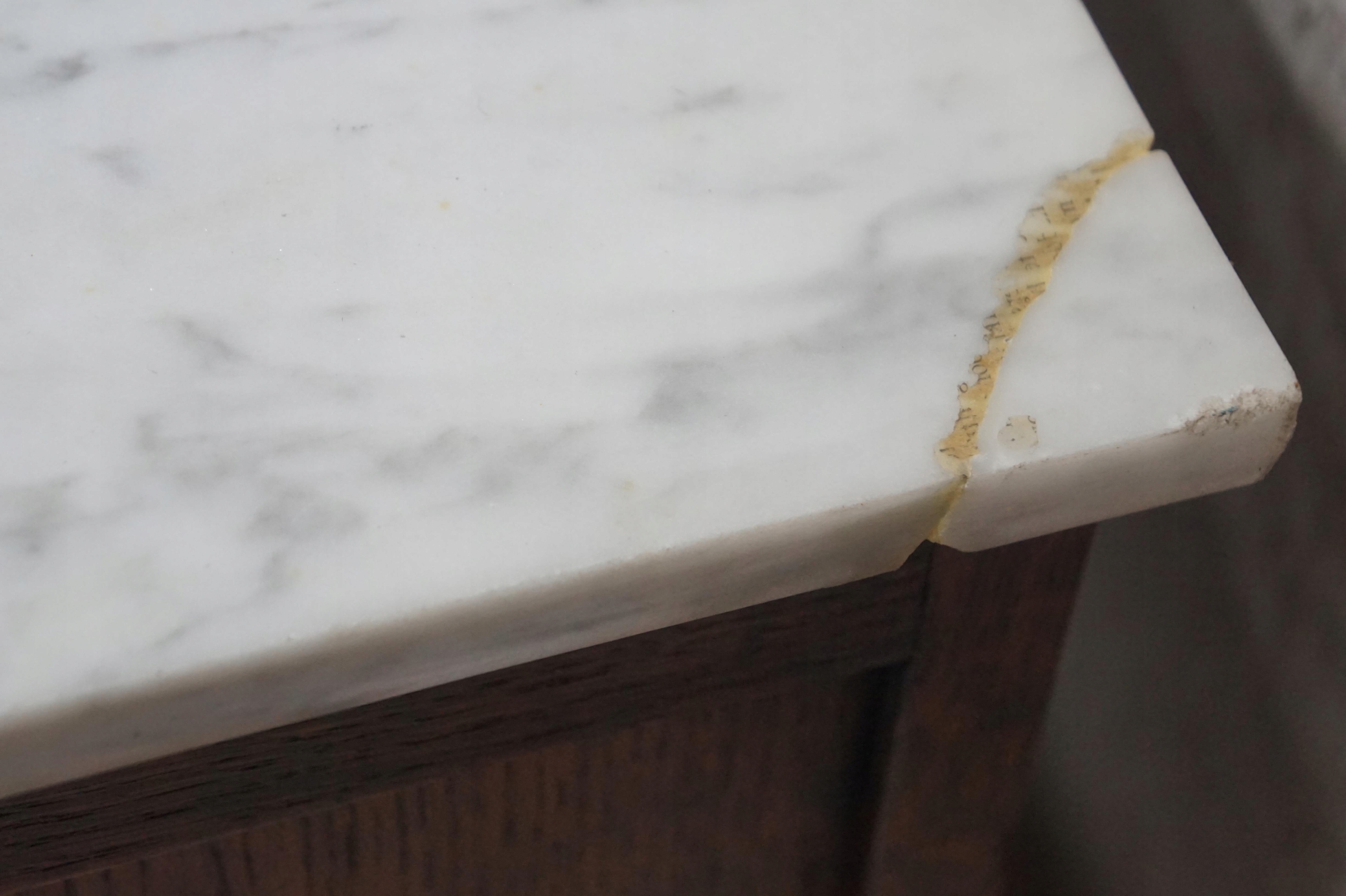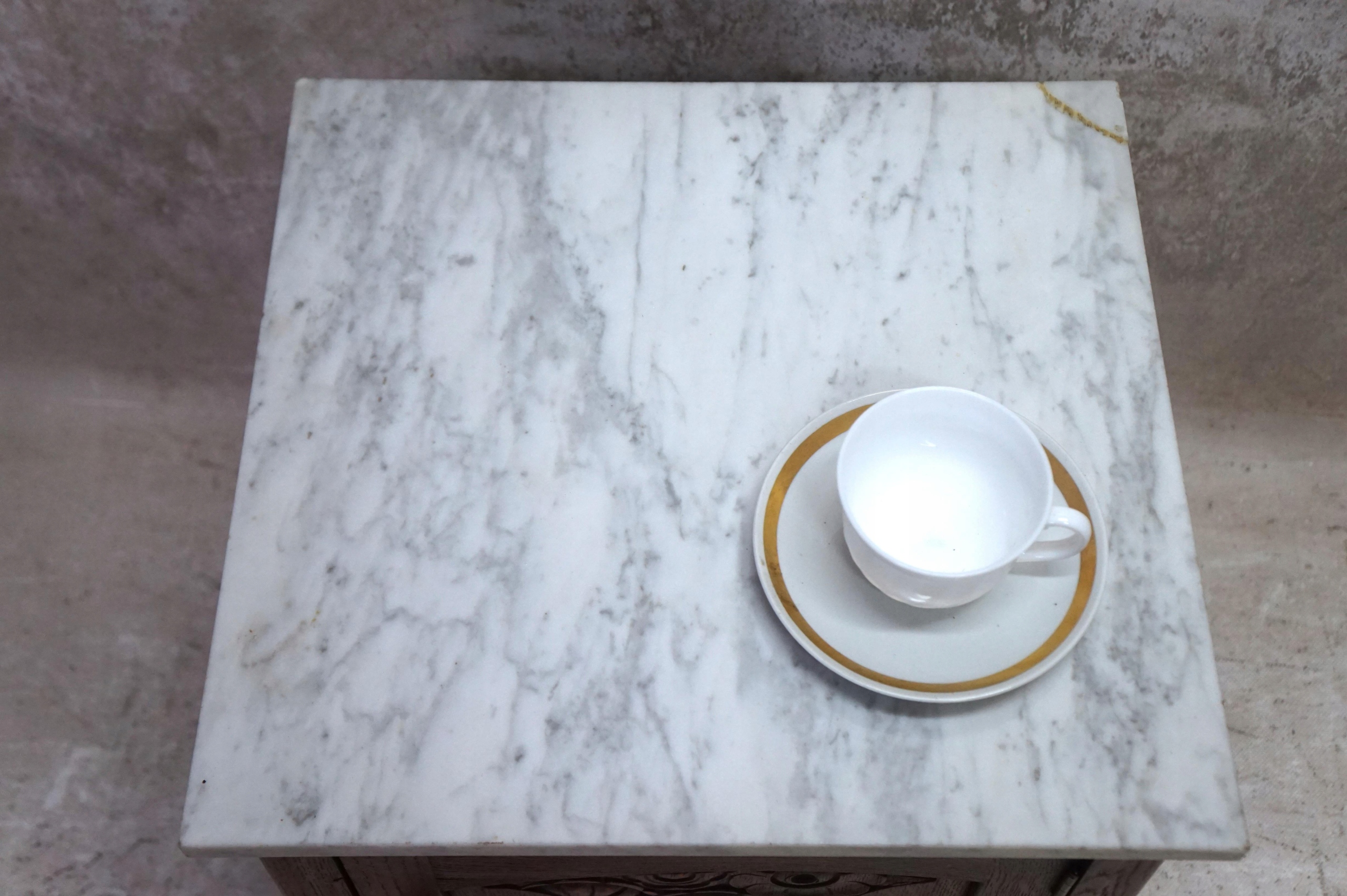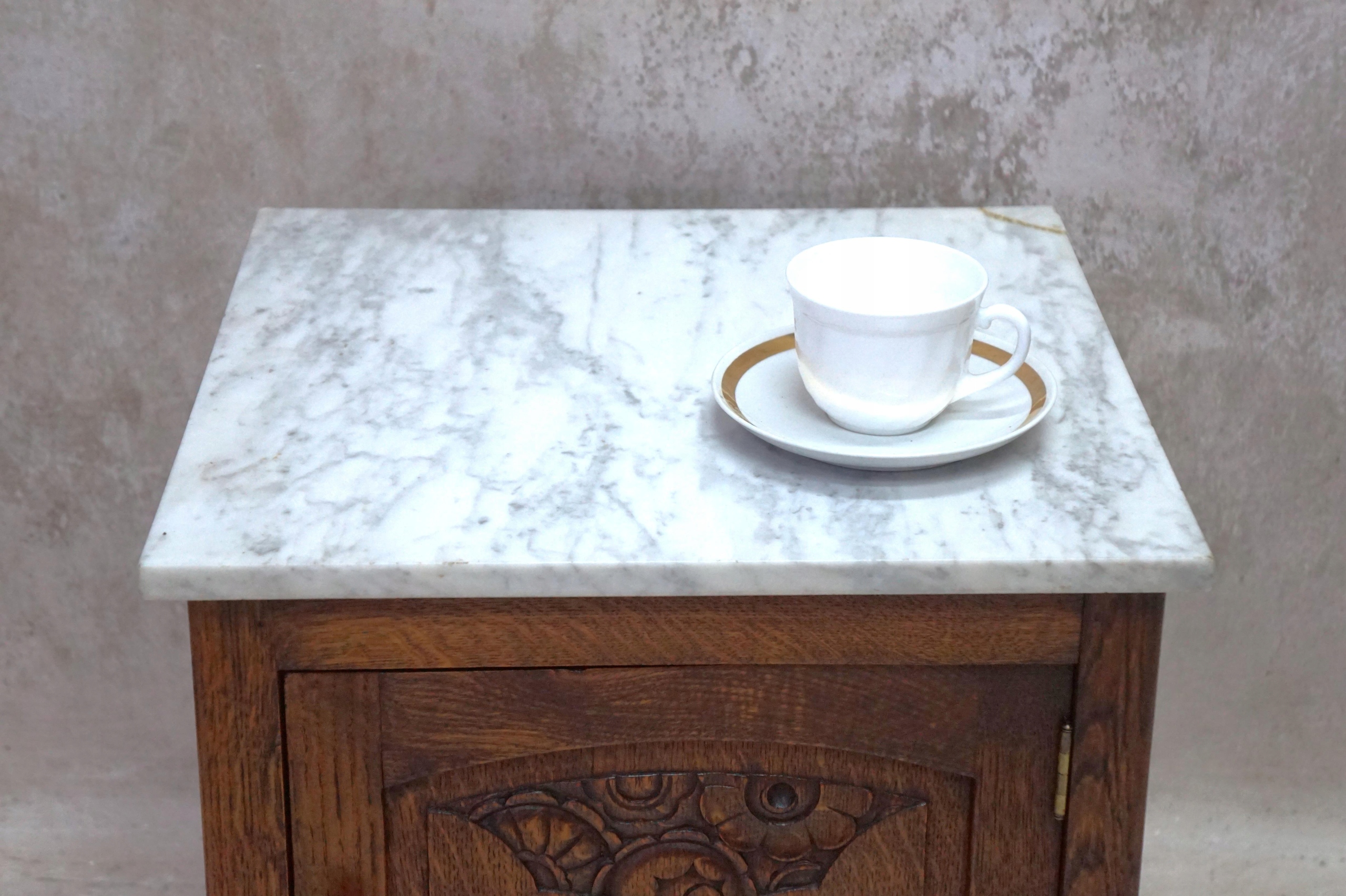 Na wierzchu blat z marmuru w kolorze biało szarym