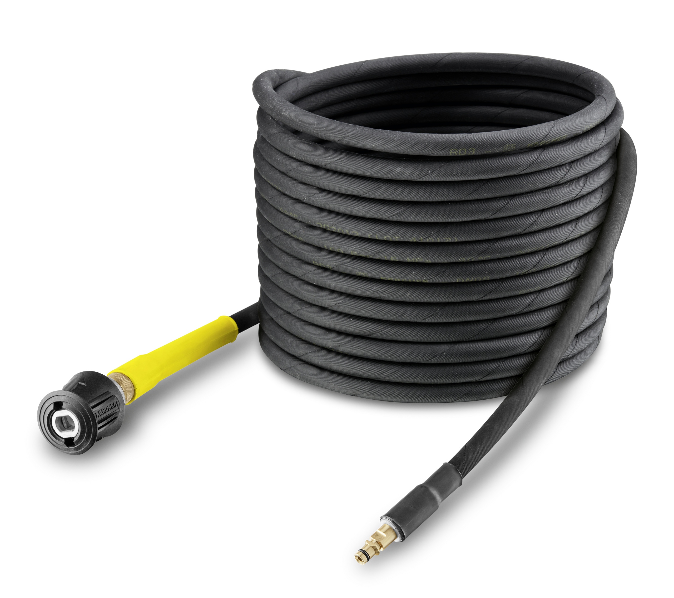Gumowa przedłużka węża wysokociśnieniowego dla pistoletów klasy Best z systemem szybkozłącza. 10 m gumowy wąż do urządzeń wysokociśnieniowych zapewniający większy zasięg. Łatwe podłączanie pomiędzy pistoletem z systemem szybkozłącza i wężem wysokociśnieniowym. Wytrzymały, wysokiej jakości wąż, z wzmocnieniem stalowym dla większej trwałości. Przedłużka węża dla ciśnień do 160 bar i temperatur do 80 °C. Odpowiednia również do pracy z środkami czyszczącymi. Przeznaczona do domowych urządzeń wysokociśnieniowych Kärcher K3 - K7 produkowanych od 2008 roku, w których wąż podłączany jest do pistoletu za pomocą systemu szybkozłącza.