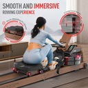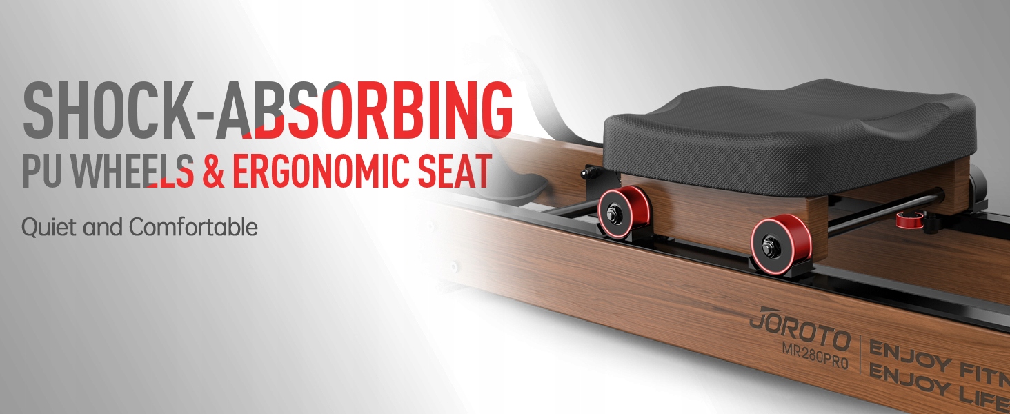 Dzięki naszemu zaawansowanemu systemowi oporu wodnego, symulującemu natural opór wiosłowania w wodzie, każde pociągnięcie wiosłem jest łatwe. Zbiornik wodny wioślarza posiada 6 oznaczeń poziomu wody, które działają opór poprzez dodawanie lub zmniejszanie ilości wody w następstwie działaniaj. Ergonomiczne siedzisko, wyposażone w rolki z organicgo polimeru PU, zapewnia cichą i wygodną jazdę, pozwalając skupić się na treningu.