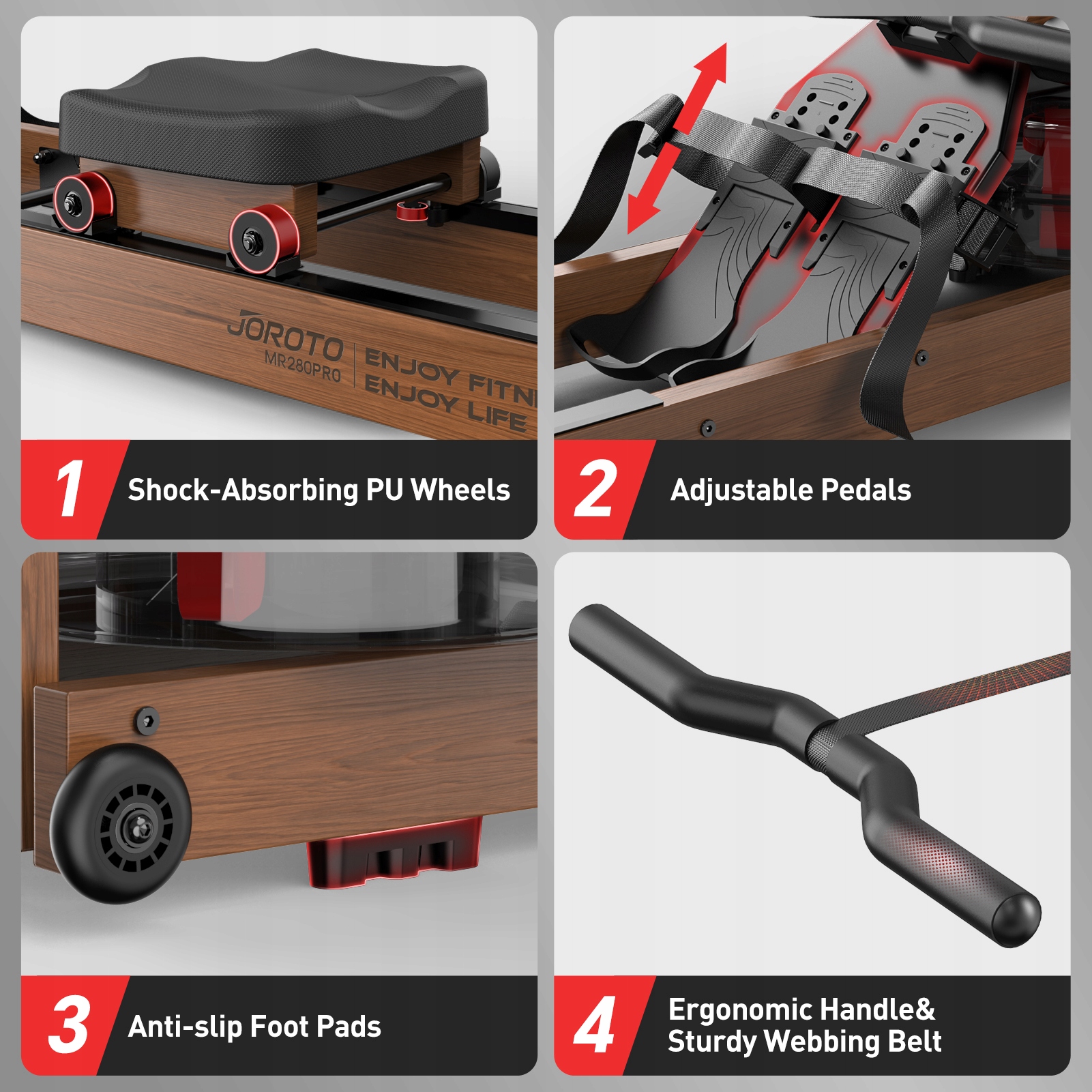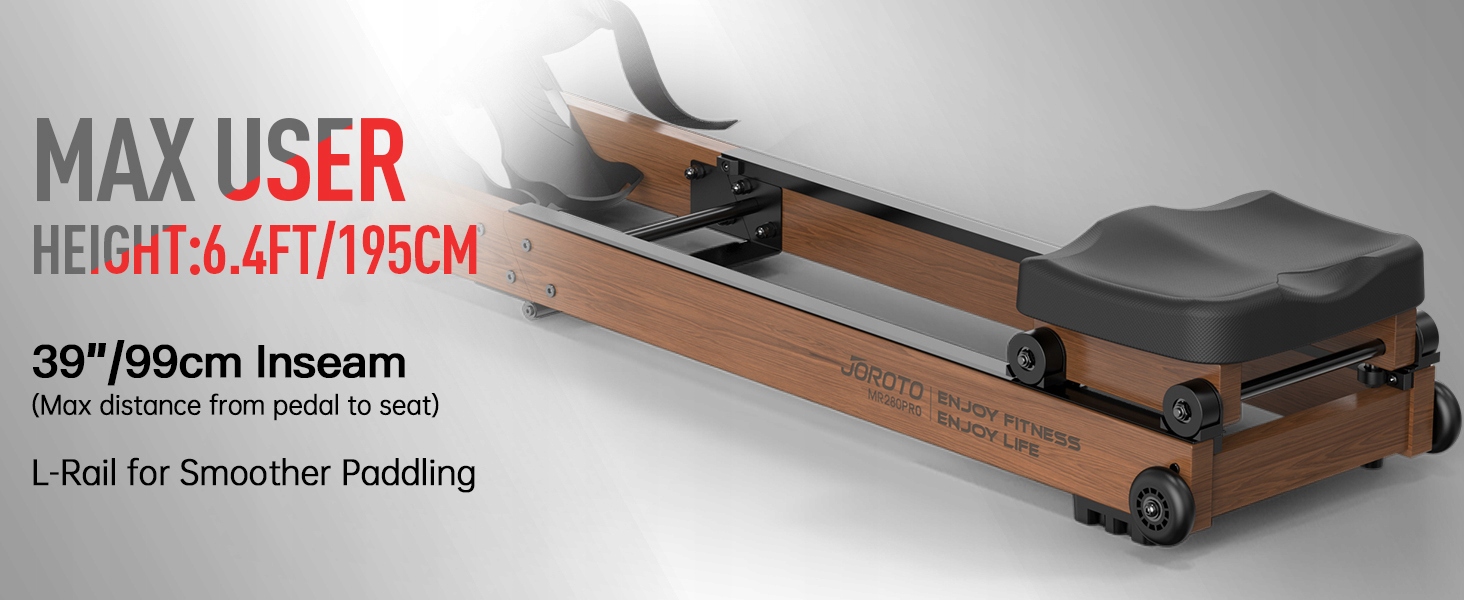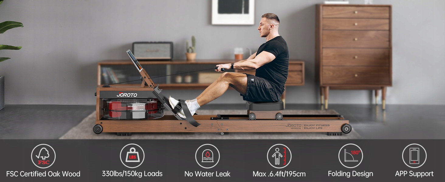 Wykonane z zestawu jakości litego drewna dębowego, wioślarze wodne JOROTO MR280PRO do użytku domowego są tylko nieaktywne, ale także dostępne w naturalnym piękna drewna. Rama z litego drewna dębowego z certyfikatem FSC, że drewno pochodzi z odpowiedzialnych źródeł, promując zrównoważoną dostępną leśną. Doskonałe rozwiązanie i dostarczenie na obciążenie 400. Szyna odpowiednia dla użytkowników o maksymalnej długości nóg 39 cali/99 cm.
