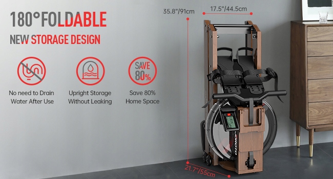 Nowa konstrukcja umożliwiająca złożenie pod kątem 180° pozwala na dostęp do miejsca w domu, a naturalna, piękna faktura dębu sprawia, że wygląda jak piękny mebel. Wymiary po złożeniu: 21,3*17,5*35,8"/54*44,5*91 cm. Dzięki opatentowanej technologii uszczelniania nie ma potrzeby opróżniania urządzenia po użyciu, a podczas przechowywania w pozycji pionowej nie dochodzi do wycieku wody.