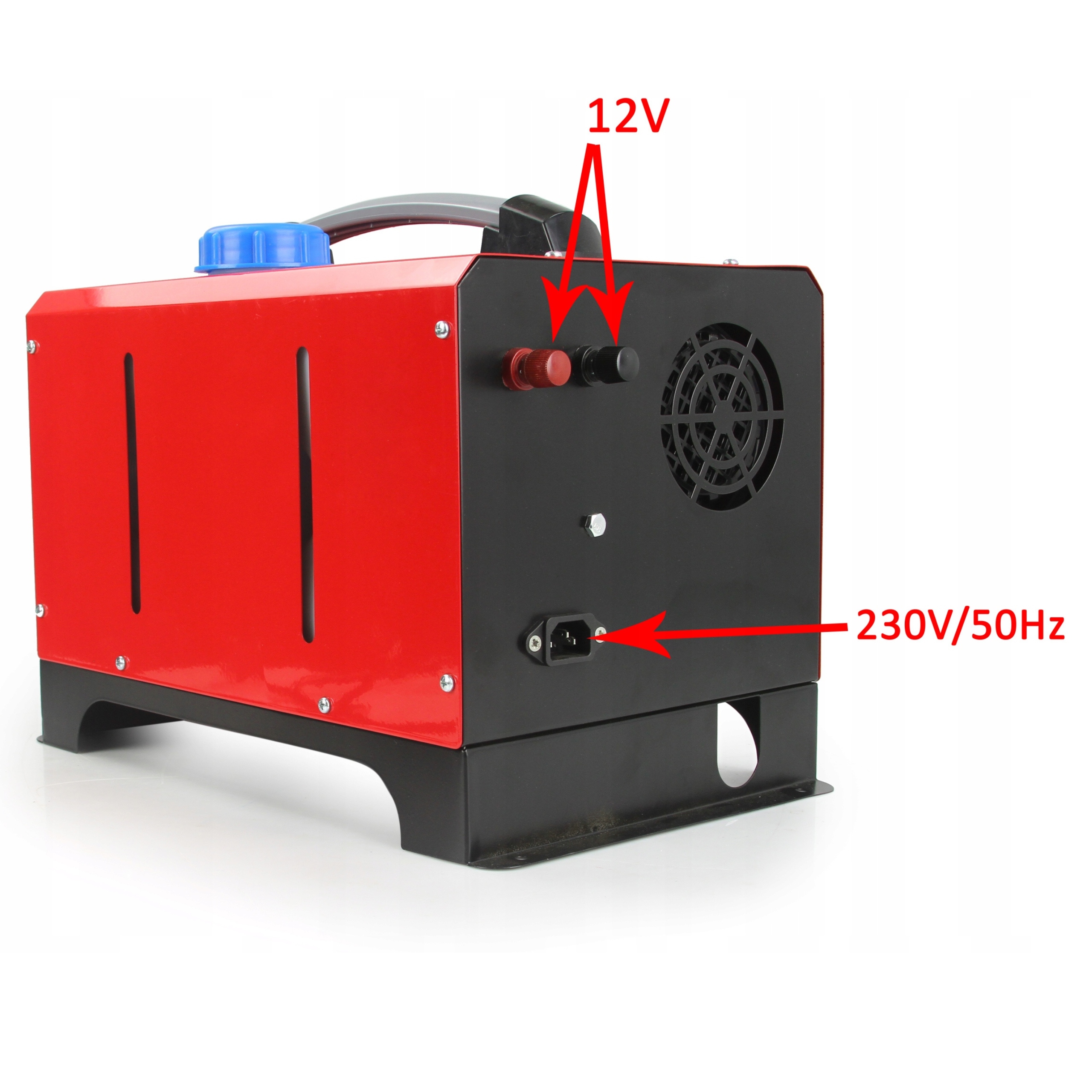 Nagrzewnicę postojową można podłączyć pod zasilanie z sieci AC 230V/50Hz, co umożliwia ogrzewanie pomieszczeń, magazynów czy garaży. Można podłączyć ją także pod zapalniczkę samochodową lub akumulator DC 12V 15A dzięki czemu bez problemu można ogrzać pojazd lub przyczepę kempingową.