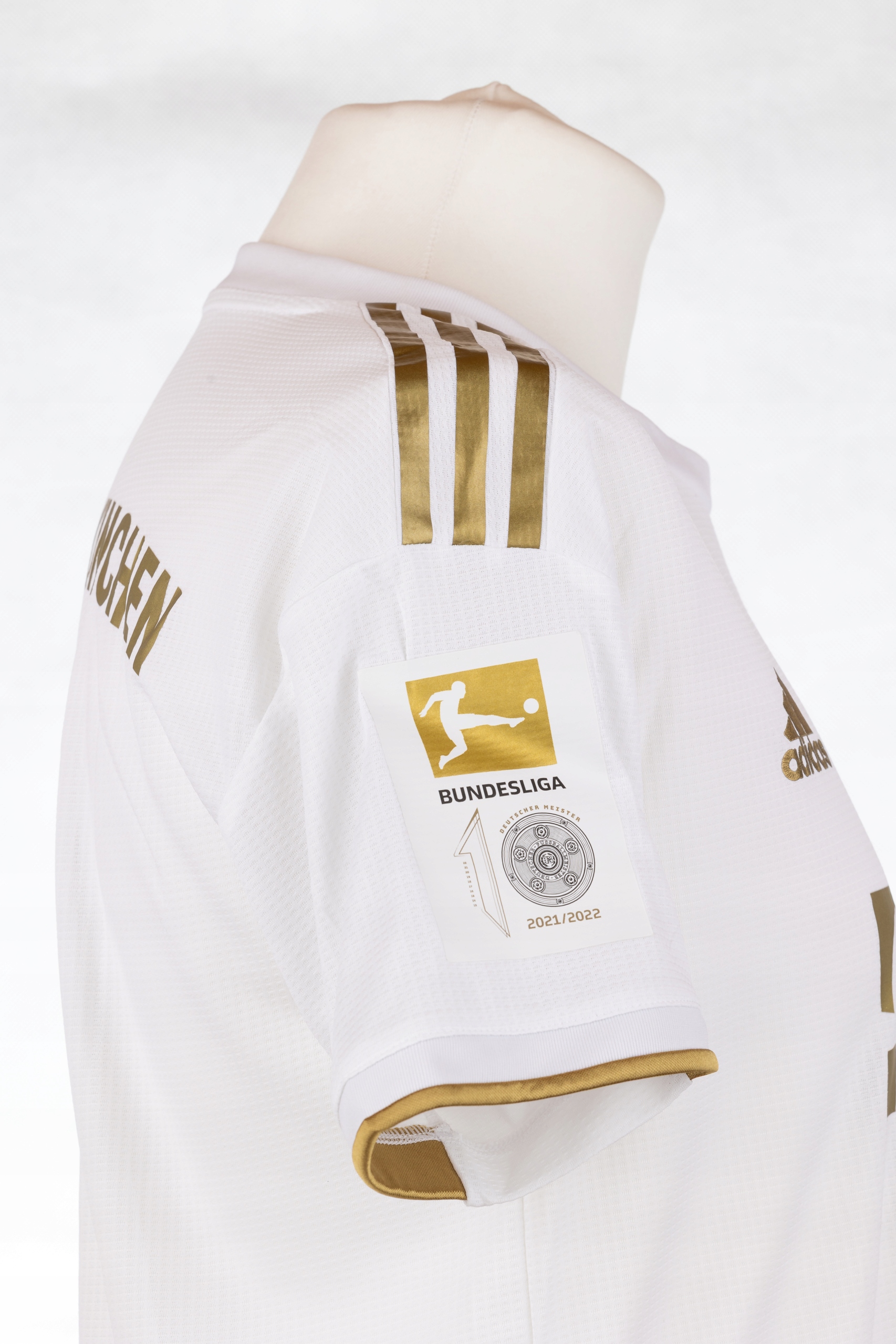 A - koszulka z logo Audi, biała, Bayern Monachium pochodzi z meczu przeciwko Manchester City, rozegranego 24/07/2022, w czasie 2022 Audi Summer Tour.
