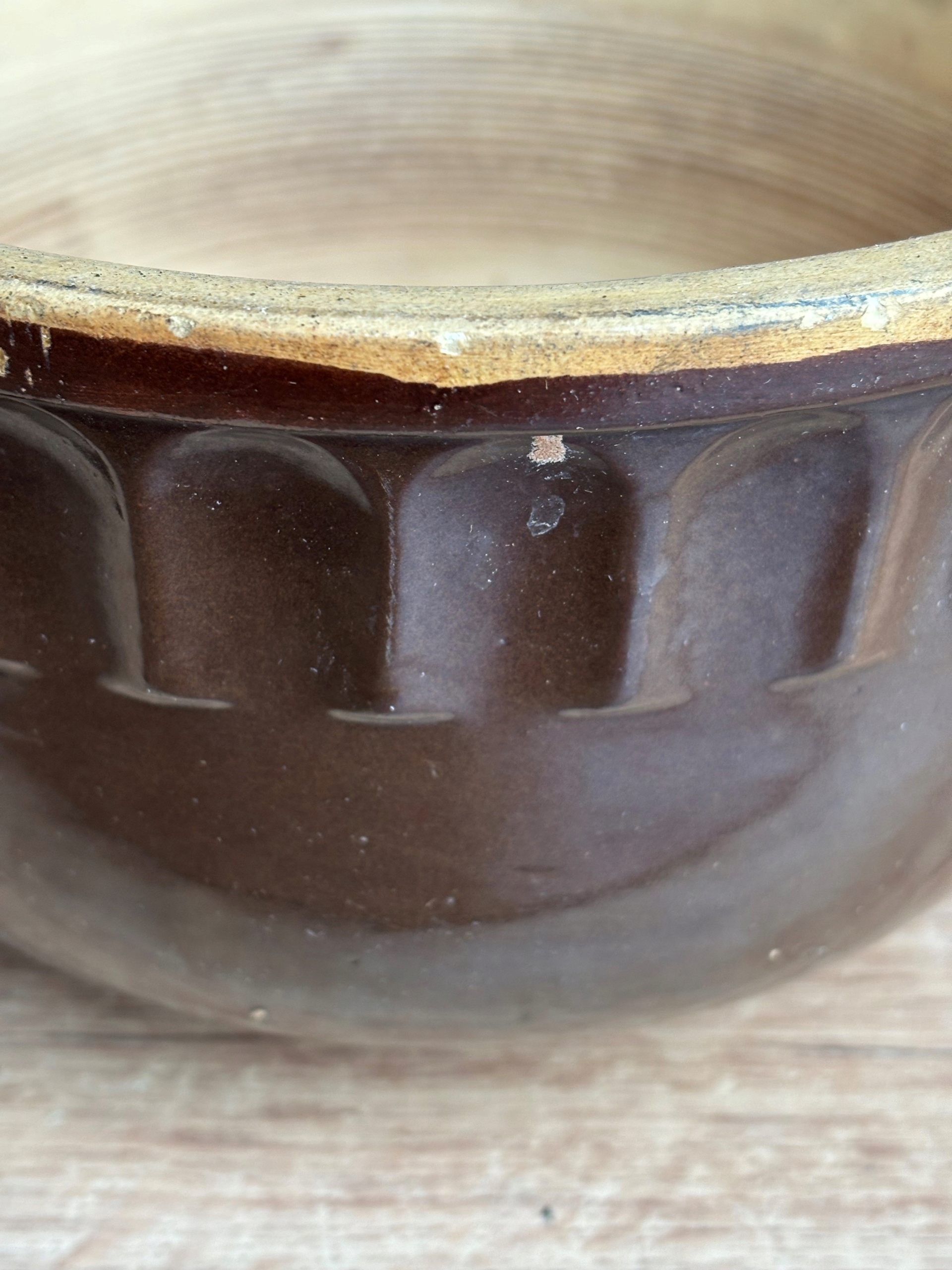 Duża misa makutra kamionka. Wielkość wys. 15 x 25,5 cm. Misa ma ślady użytkowania i drobne wady. Stan przedmiotu pokazano na zdjęciach.
