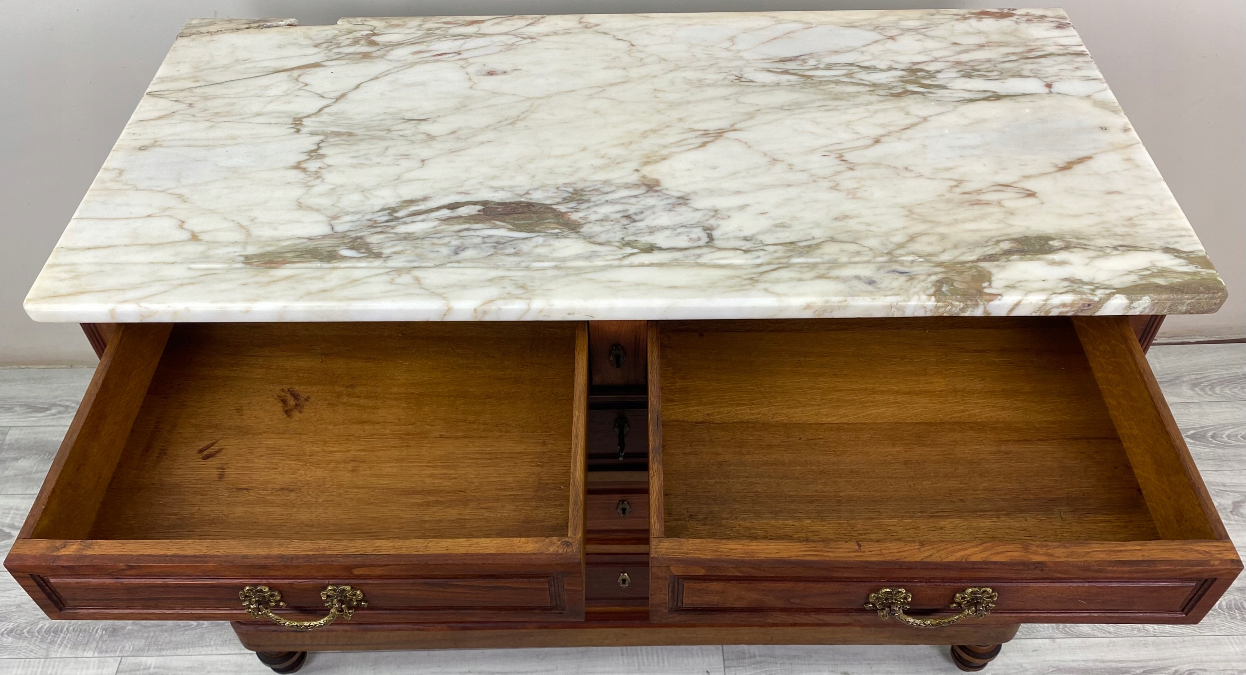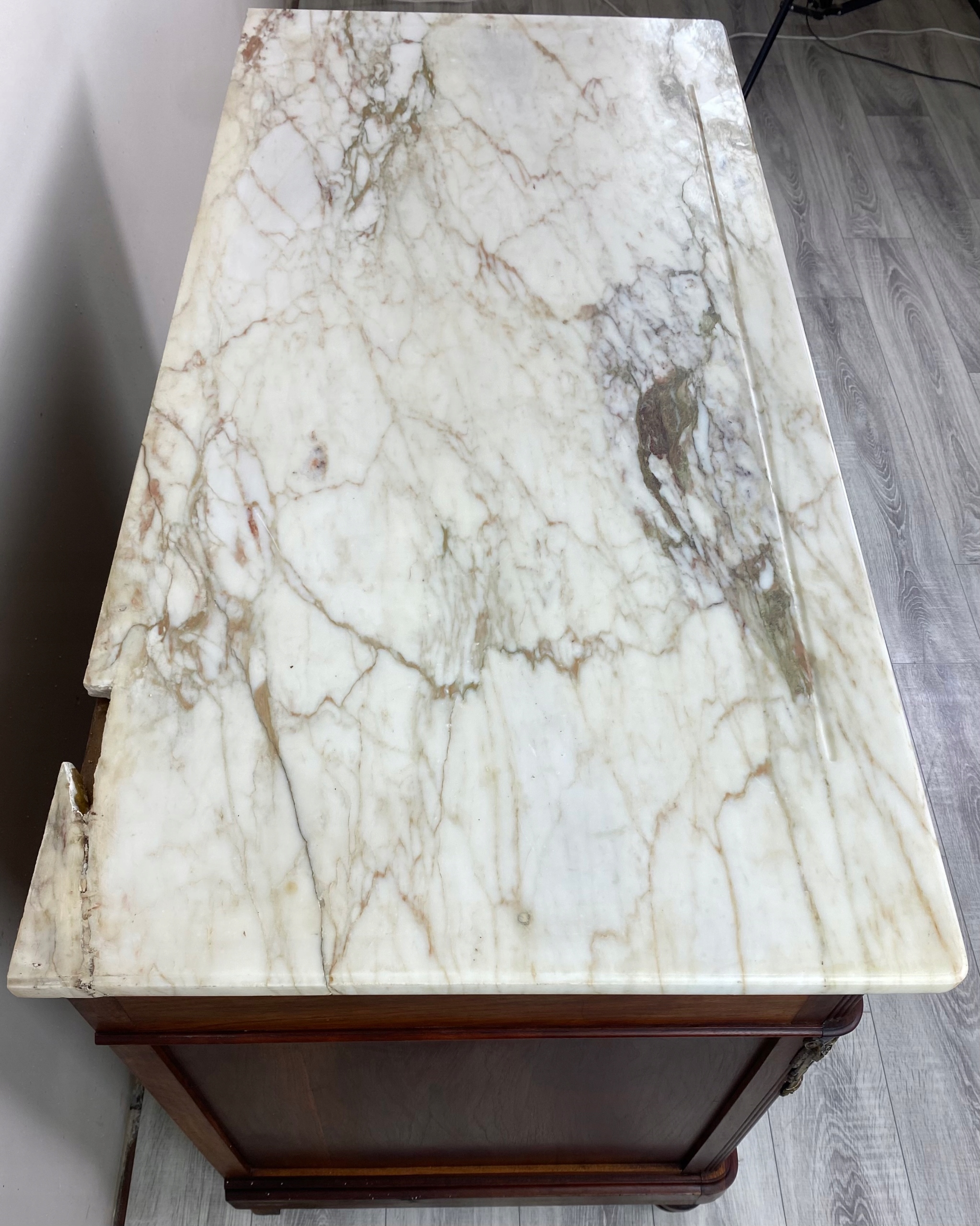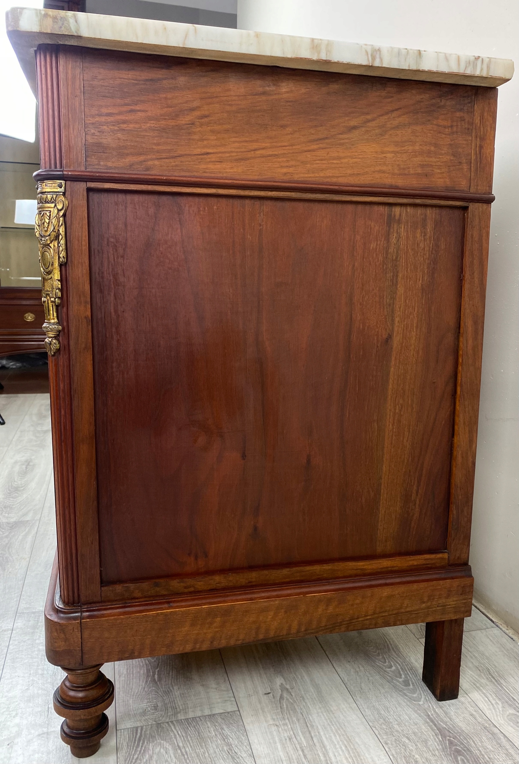 Elegancki, reprezentacyjny mebel antyczny o wysokiej jakości wykonania i wyraźnym charakterze epoki.