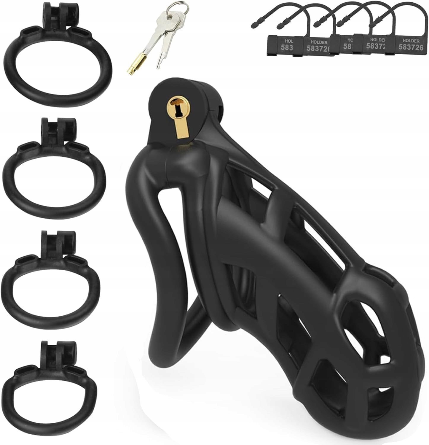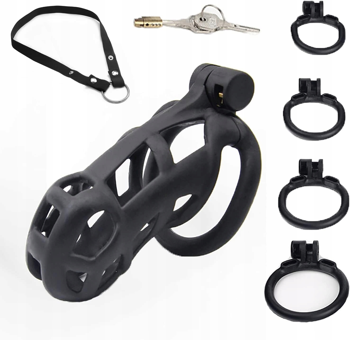 🏡 Klatka czystości dla mężczyzn z 4 pierścieniami na penisa, zabawka erotyczna, ergonomiczna, ażurowa konstrukcja, bezpieczny materiał ❗❗❗