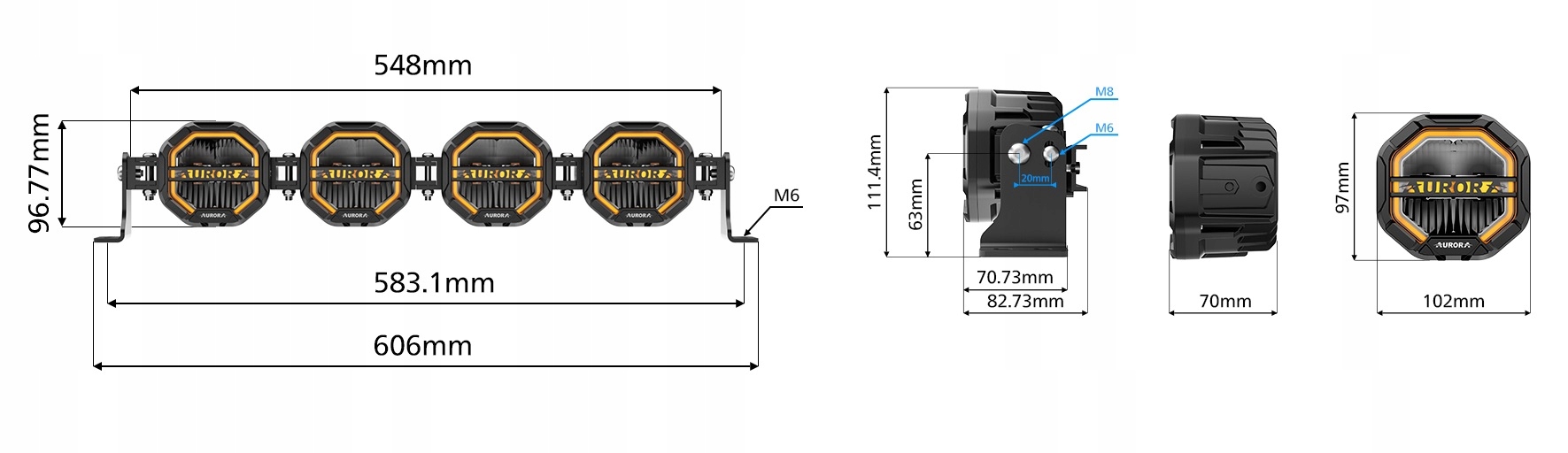 2. chipy LED firmy Osram klasy A, unikalna konstrukcja optyczna AR AURORA, jasność wyższa o 30% - 200% w porównaniu do innych marek.