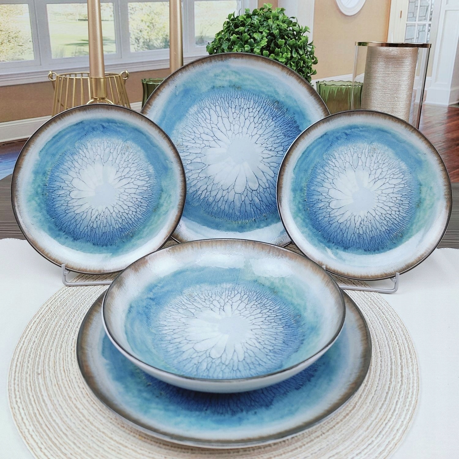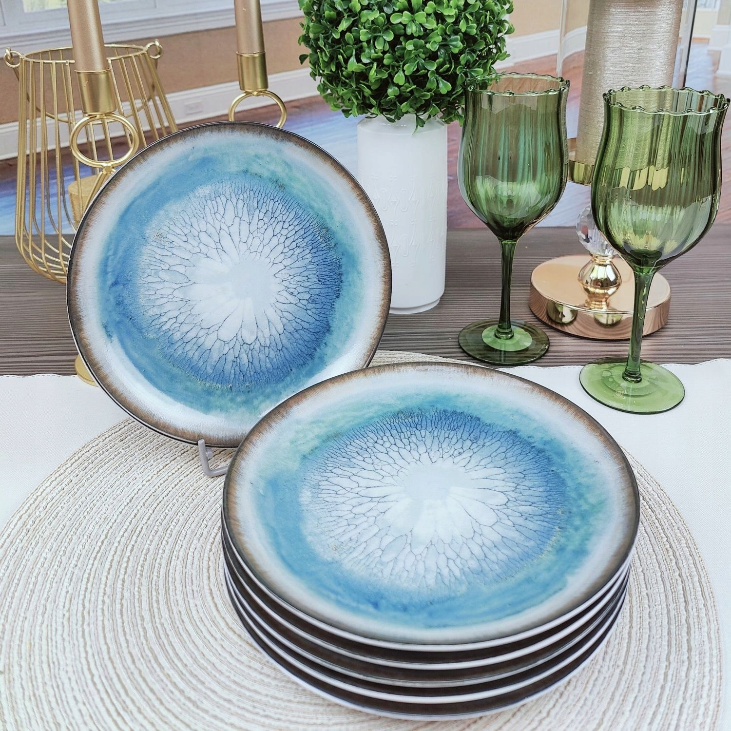 Połączenie chłodnych błękitów z ciepłymi tonami beżu sprawia, że zastawa doskonale wpasuje się w różne style wnętrz: nowoczesne, klasyczne, boho, rustykalne czy skandynawskie.