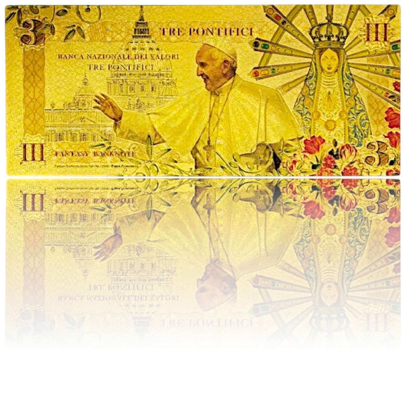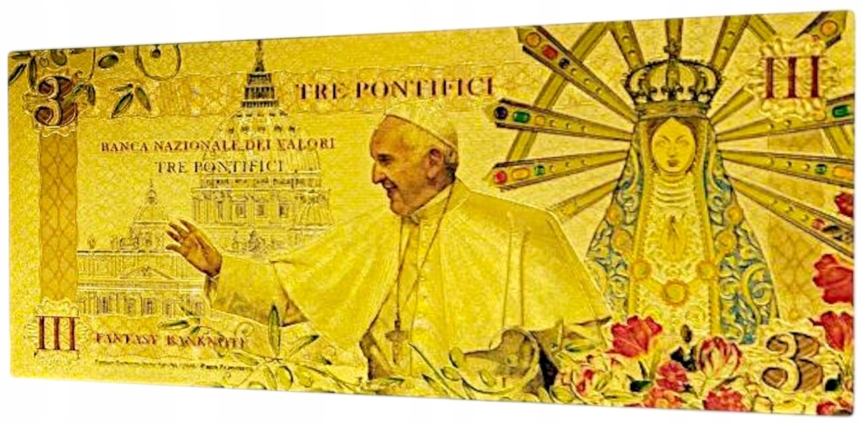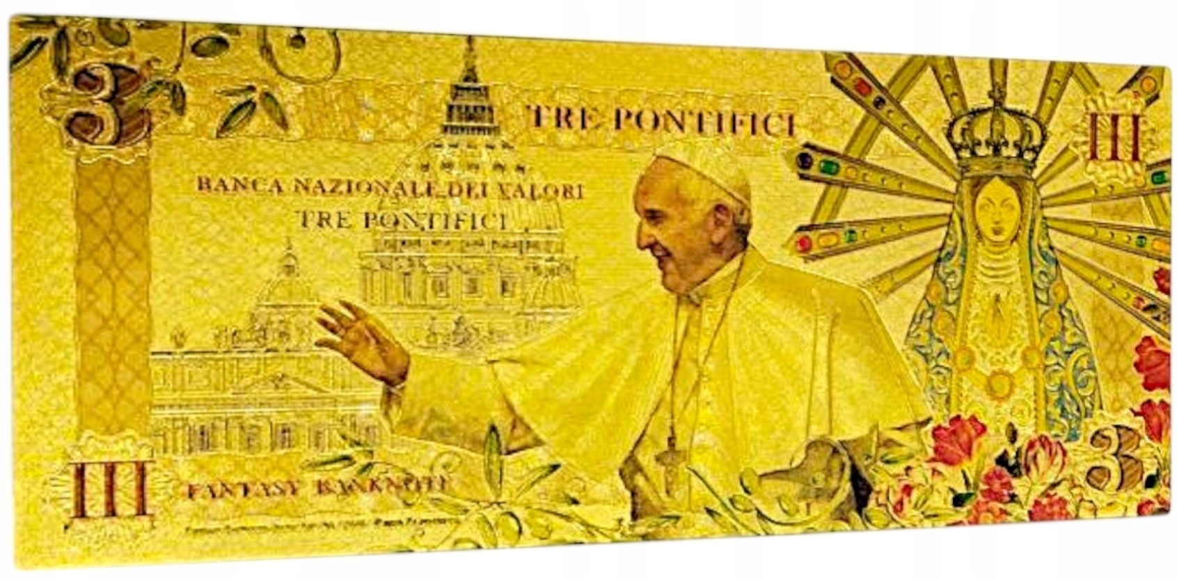 PAPIEŻ FRANCISZEK POZŁACANY FANTAZYJNY BANKNOT KOLEKCJONERSKI Z PVC