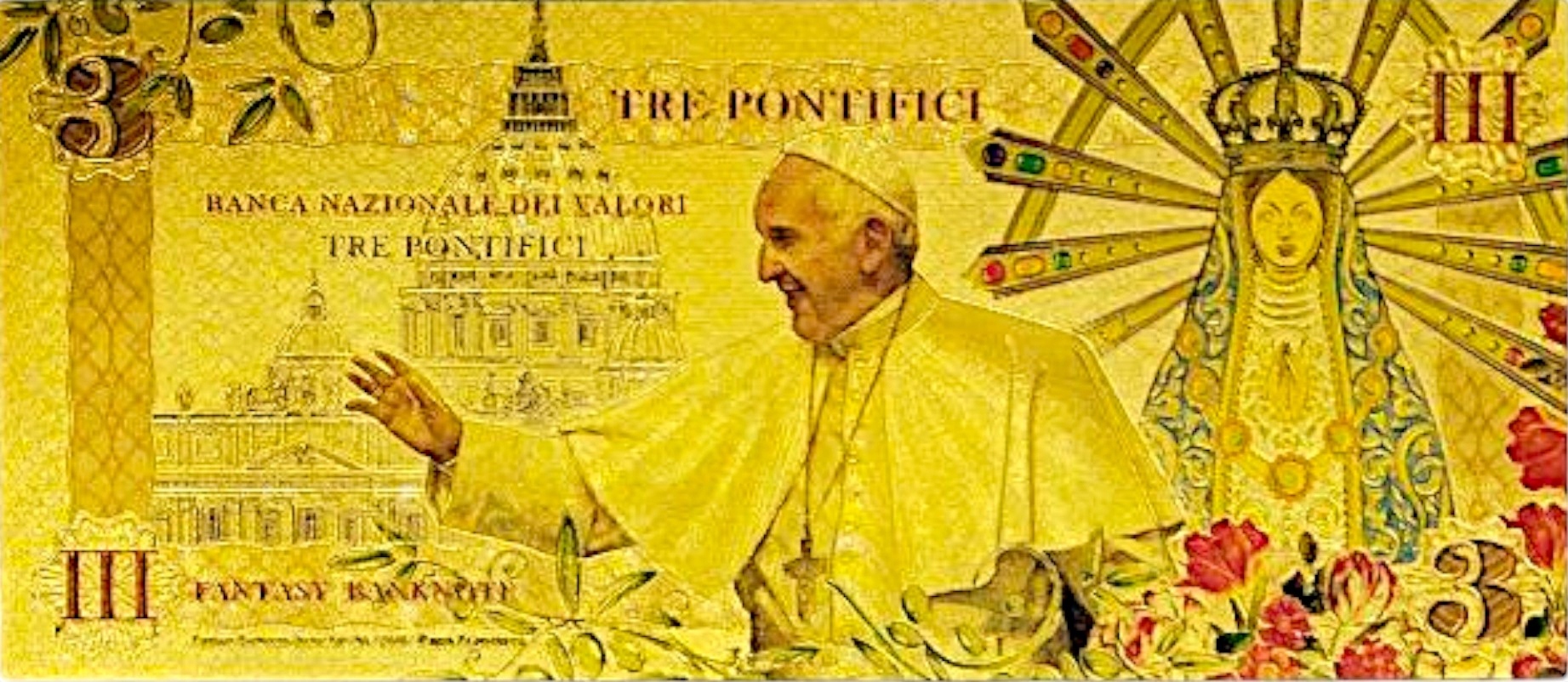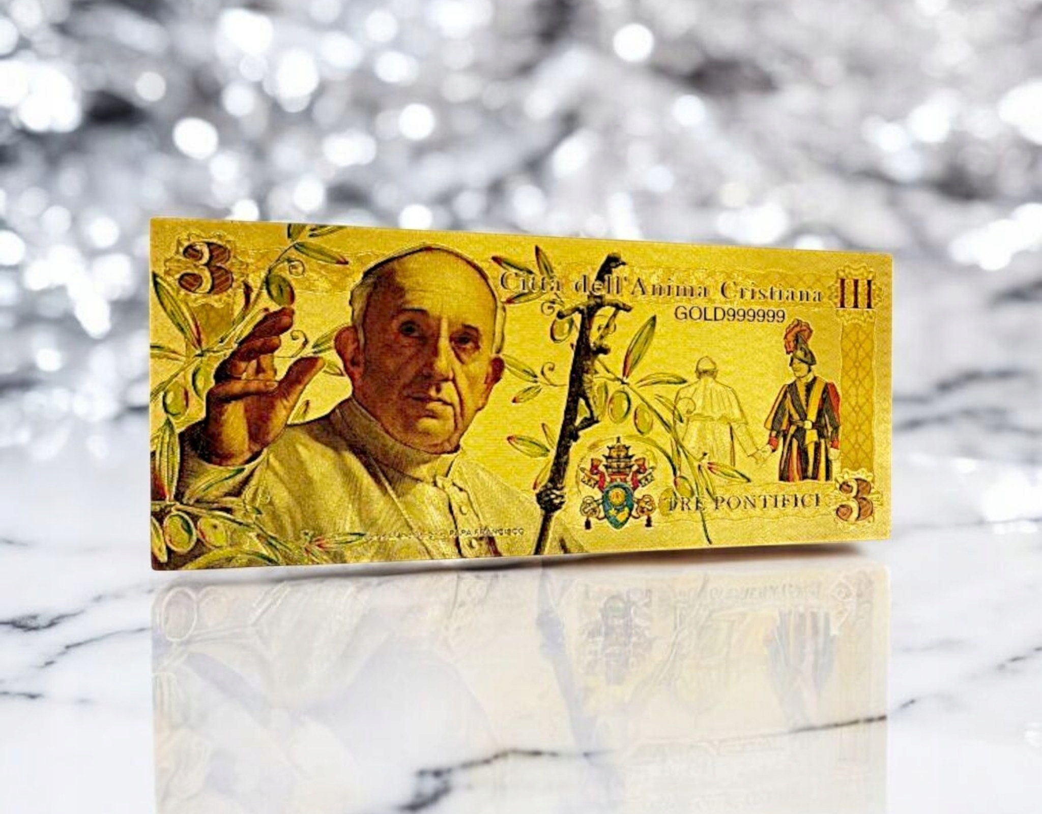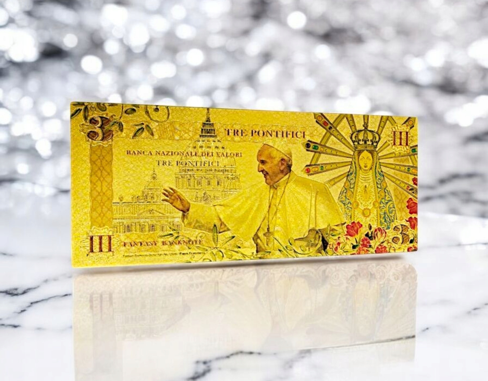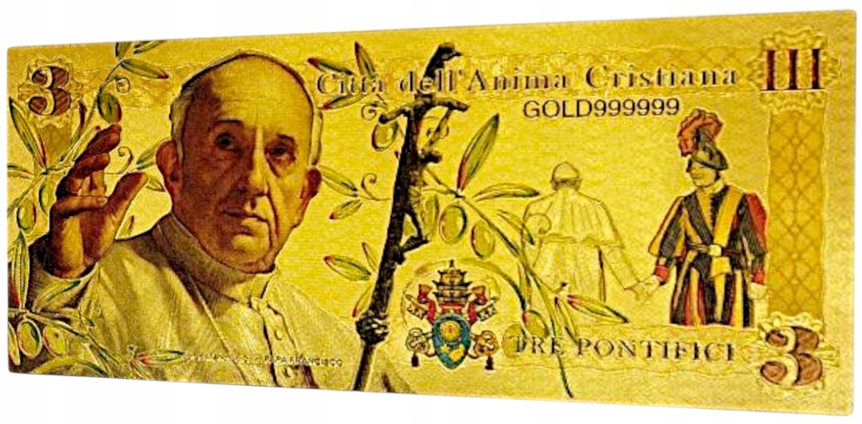 PAPIEŻ FRANCISZEK POZŁACANY FANTAZYJNY BANKNOT KOLEKCJONERSKI Z PVC