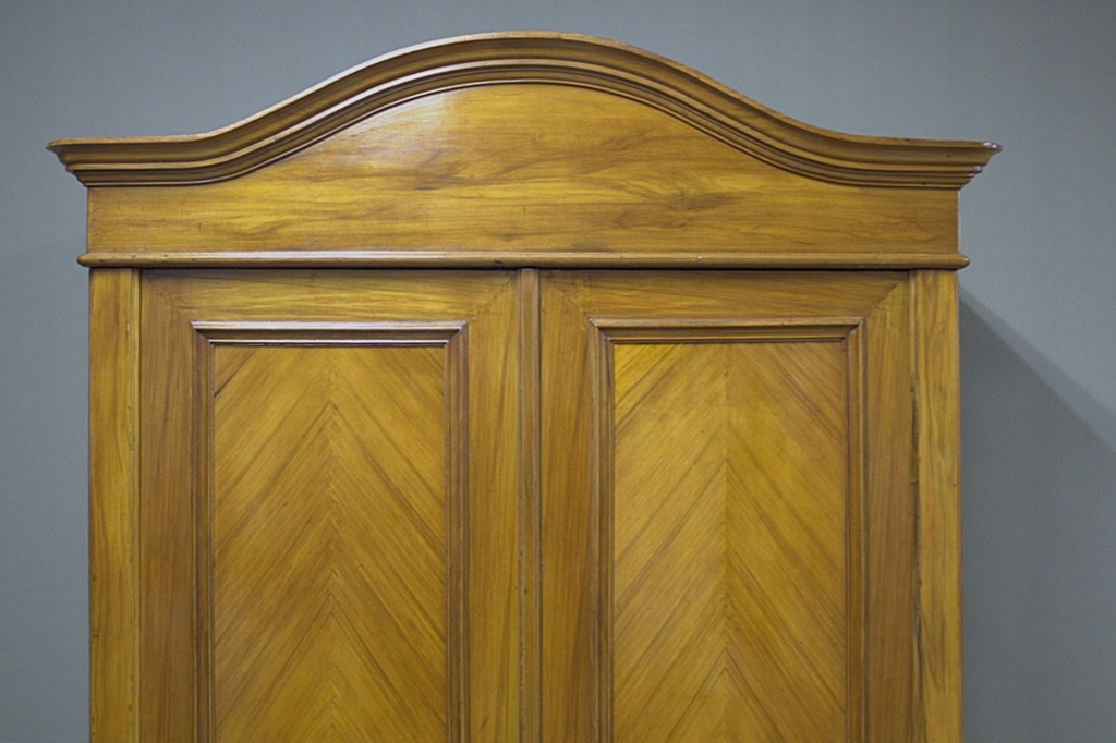 Szafa została poddana renowacji. Widoczne delikatne ślady użytkowania podkreślające wiek mebla.