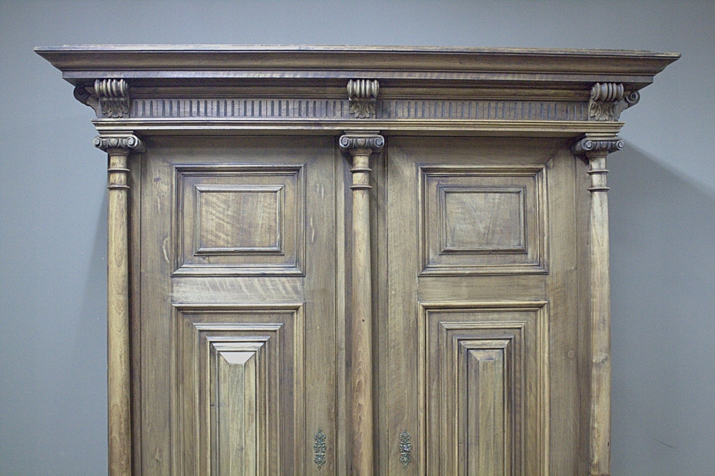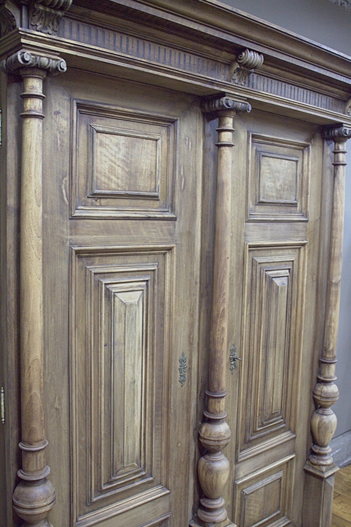 Mebel o prostej formie ozdobiony ładnymi kasetonowymi płycinami oraz kolumnami co sprawia, iż całość prezentuje się bardzo efektownie.