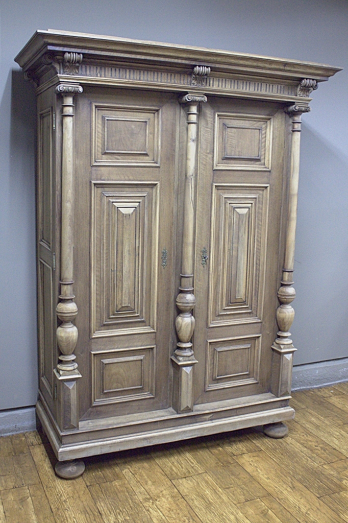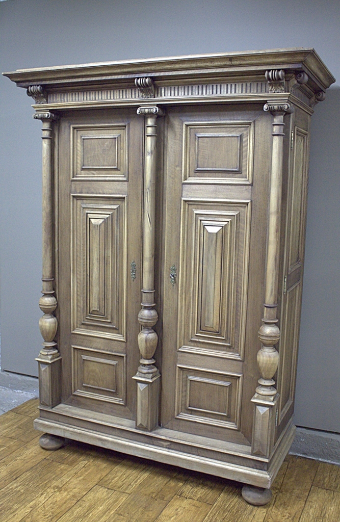 Mebel o prostej formie ozdobiony ładnymi kasetonowymi płycinami oraz kolumnami co sprawia, iż całość prezentuje się bardzo efektownie.