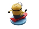 Na sprzedaż kolekcjonerska figurka przedstawiająca kultowego Minionka z serii Surprise Drinks. Postać w charakterystycznych niebieskich ogrodniczkach z logo „G”, w goglach na jedno oko, stojąca na czerwonej desce. Całość osadzona na niebieskiej podstawce.