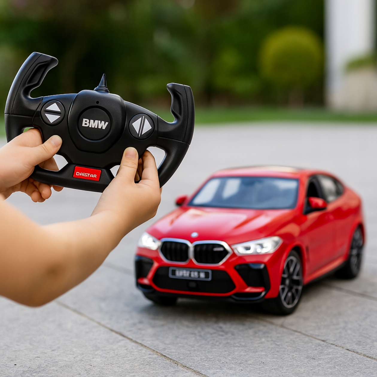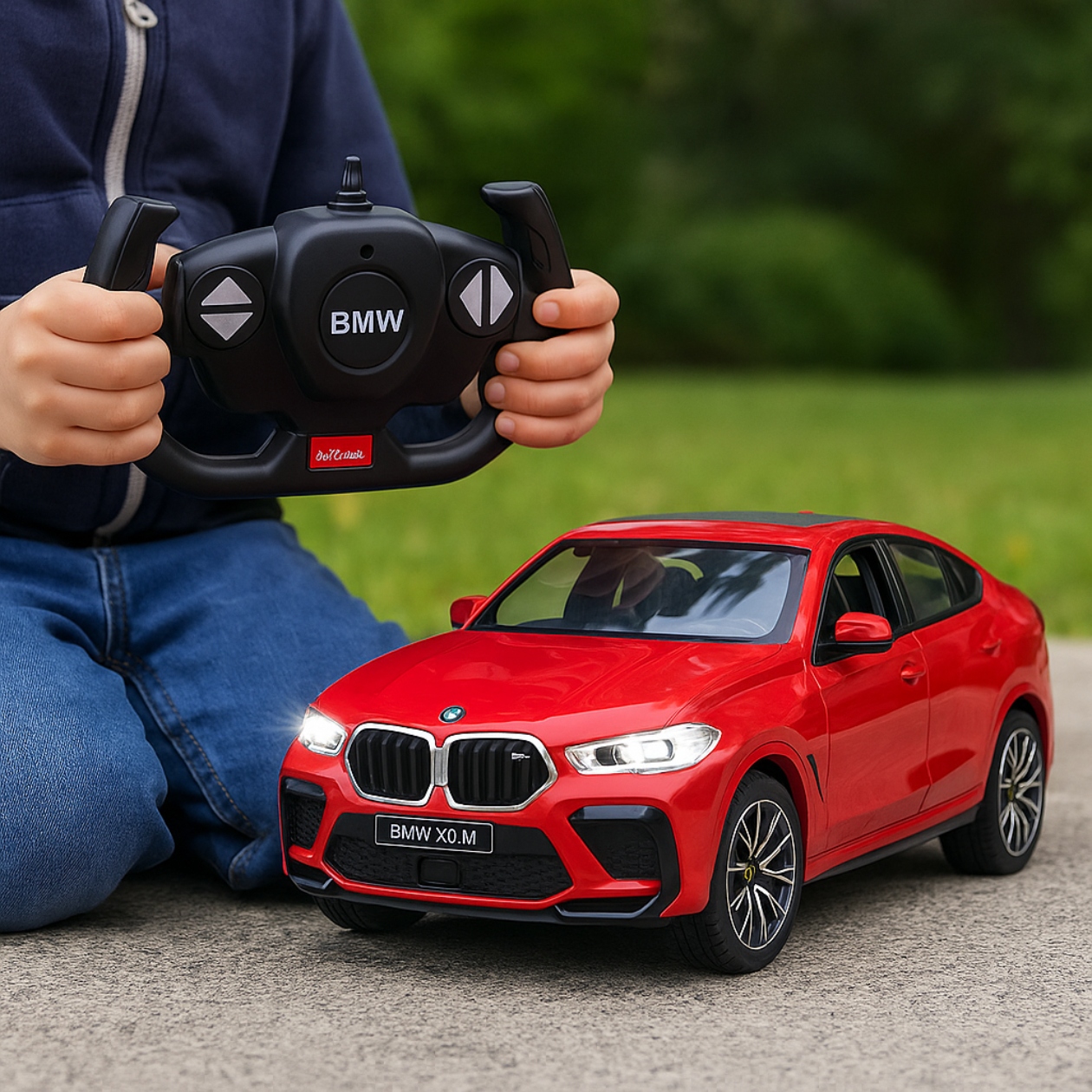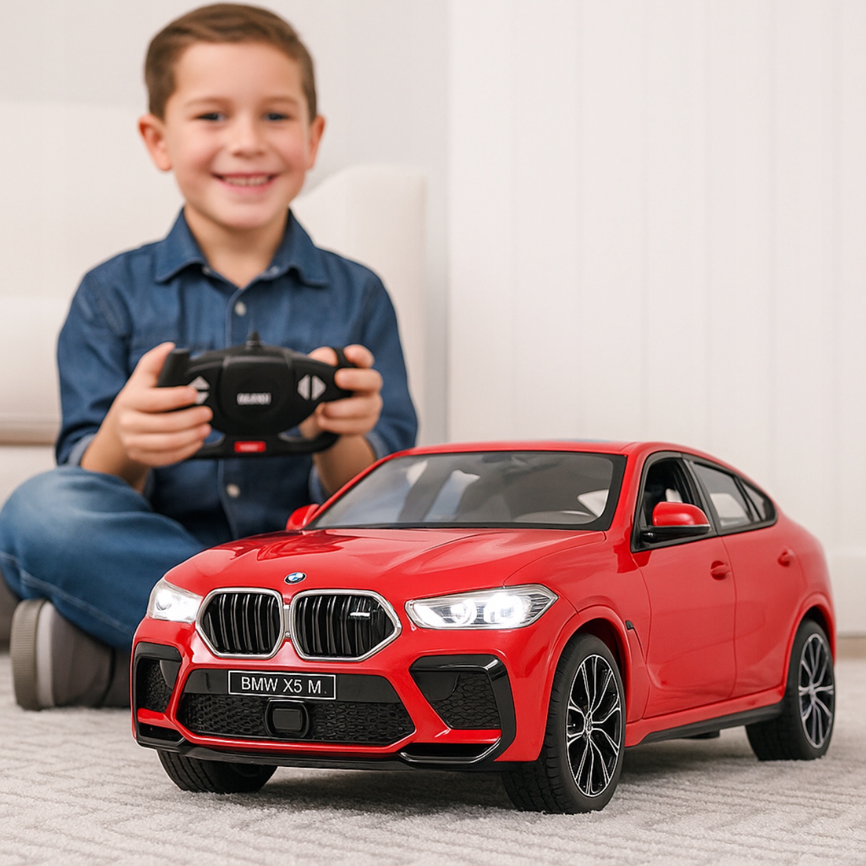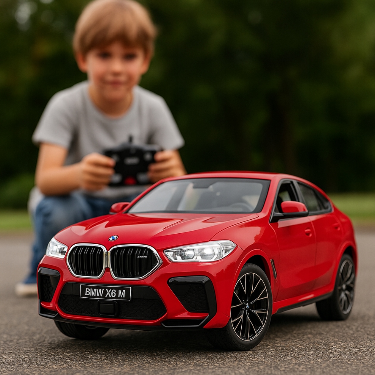 ➡️ „Odpalasz pilota, reflektory rozświetlają trasę, a czerwone nadwozie przyciąga spojrzenia. BMW X6 M rusza z miejsca z precyzją godną oryginału – to nie tylko jazda, to doświadczenie!”
