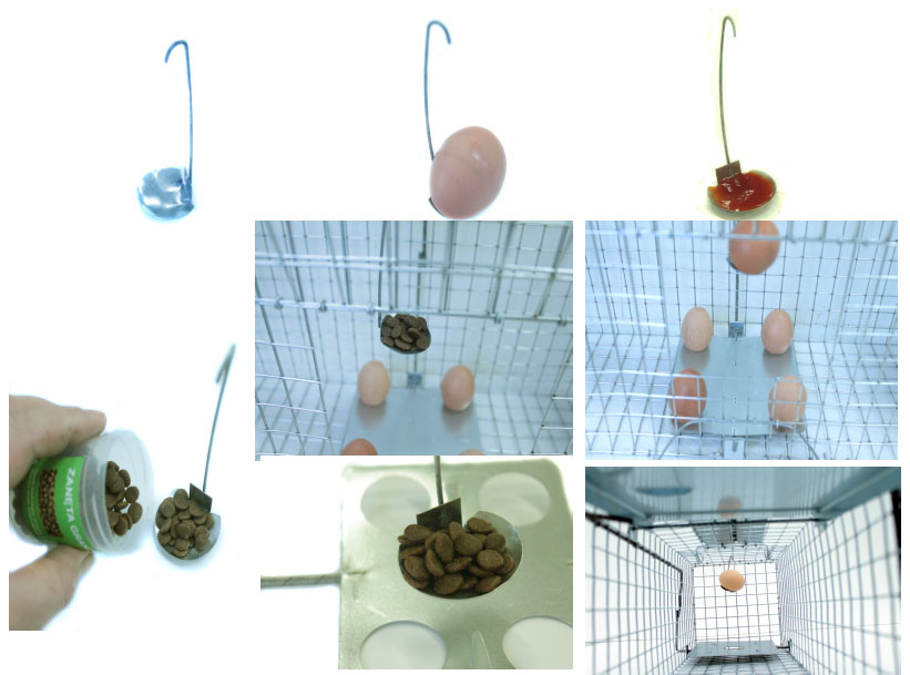 Nasze pułapki mają specjalne miejsca w których można umieścić jaja - jajo kurze to najlepszy naturalny wabik na kuny, wydry, lisy i szopy. Mamy 4 takie miejsca na blasze spustowej - to zwiększa prawdopodobieństwo poruszenia mechanizmu spustowego nawet o 400 %.