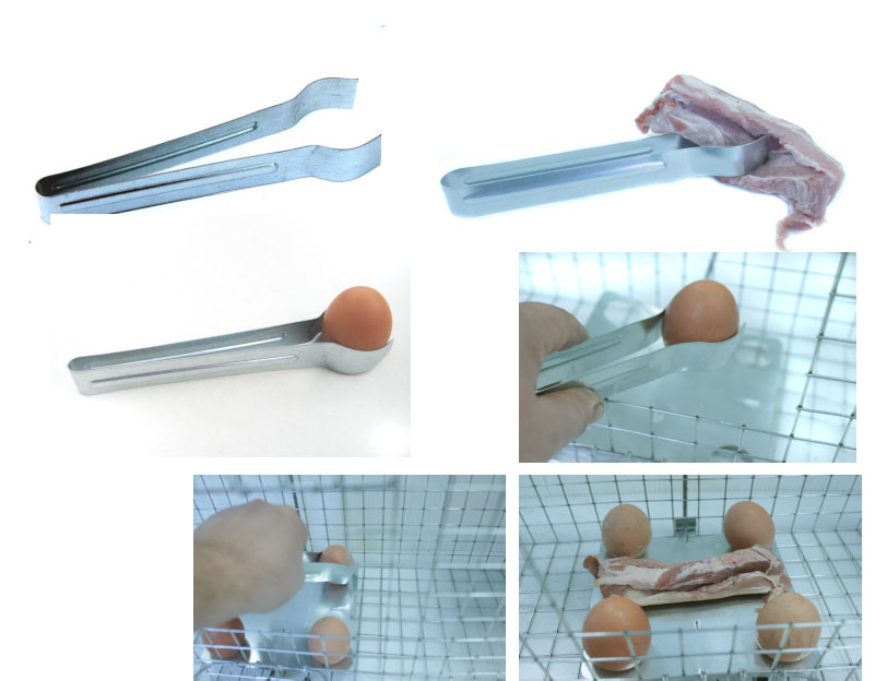 2. szczypce do ładowania jajek oraz mięsa