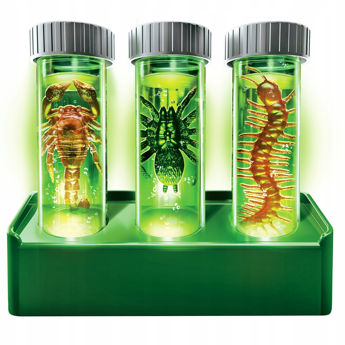 ✨ Świecenie w ciemności - podwójna zabawa: Po wykopieniu kolekcja zamienia się w świecącą wystawę. Wystarczy naświetlić modele światłem, zgasić w pokoju - i robaki z larwami zaczynają świecić. To rozmowa o fosforescencji i tym, jak niektóre żywe organizmy świecą naturalnie (bioluminescencja).