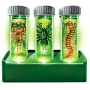 Wykop skarby i zobacz je świecące w ciemności! Twoje dziecko wcieli się w rolę archeologa, który odkrywa ukryte w bloku gipsowym robaki. To nie tylko wykopaliska - po uwolnieniu wszystkich 9 modeli (7 robaków + 2 fluorescencyjne larwy) zaczyna się drugi etap zabawy: świecą w ciemności! To połączenie ekspedycji naukowej z efektem "wow", który zachwyca młodych odkrywców.