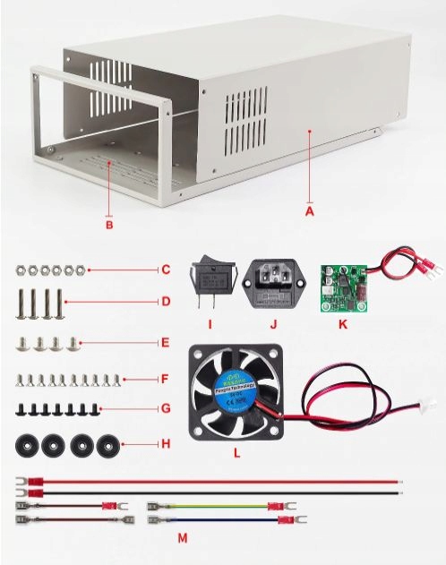 Aukcja dotyczy Obudowy + akcesoriów oznaczonych powyżej literami od A...M. Zasilacz, panel przedni należy kupić gdzieś indziej, u nas nie jest dostępny.