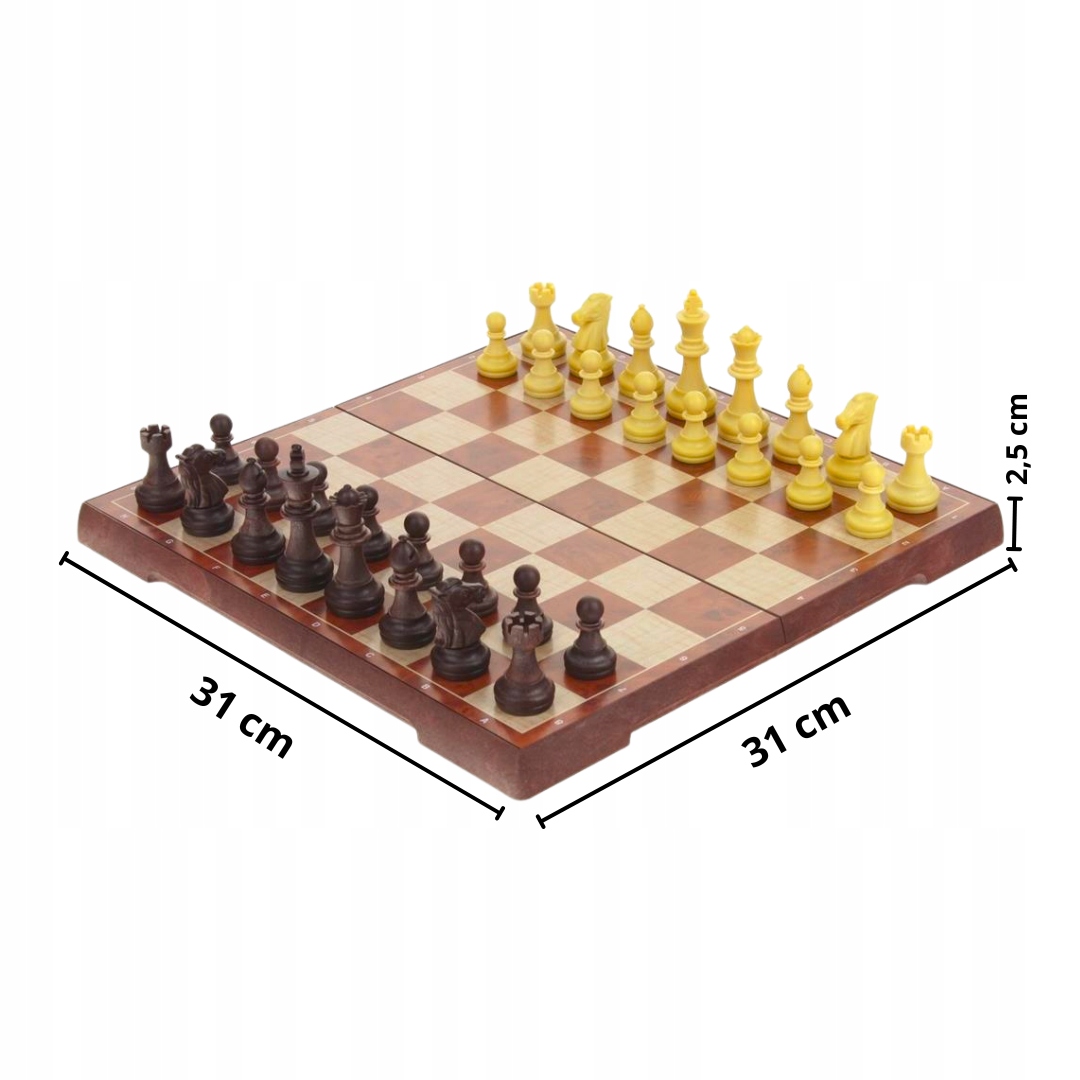 W zestawie znajdują się także pionki do warcabów — to aż dwie klasyczne gry w jednym komplecie!