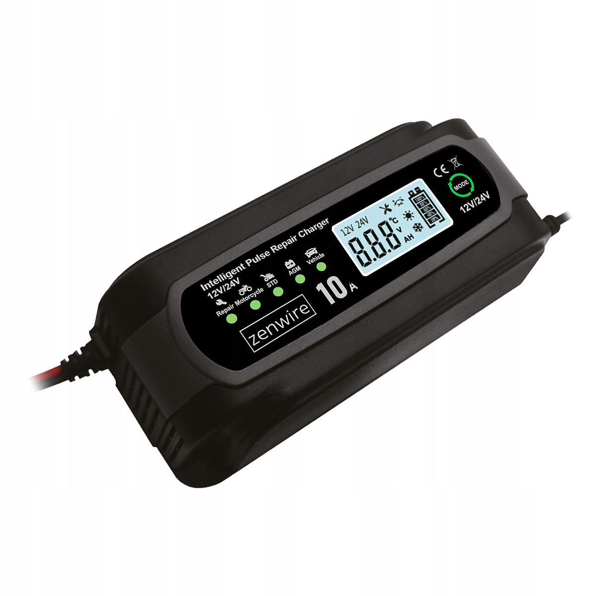 Prostownik Zenwire JMD-10 to intuicyjne i nowoczesne, proste w obsłudze urządzenie, które umożliwia szybkie, bezpieczne i w pełni kontrolowane ładowanie akumulatorów w pojazdach 12V, 24V 10a ta moc pozwala na ładowanie akumulatorów w większości samochodów ciężarowych i osobowych, motocykli, łodzi, wózków widłowych, kosiarek, rowerów, zabawek, alarmów i wielu innych. Prostownik posiada inteligentną funkcję naprawy akumulatora oraz wyświetlacz LCD. Tryb letni i zimowy pozwala na korzystanie w wymagających warunkach. W zestawie otrzymasz prostownik, klemy do akumulatora, wbudowany kabel zasilający, instrukcję obsługi.