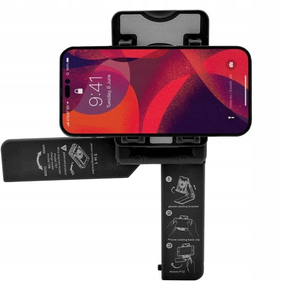 1️⃣Wielofunkcyjność – pełni rolę podstawki, uchwytu selfie i chłodziarki, zwiększając komfort i wszechstronność użytkowania.