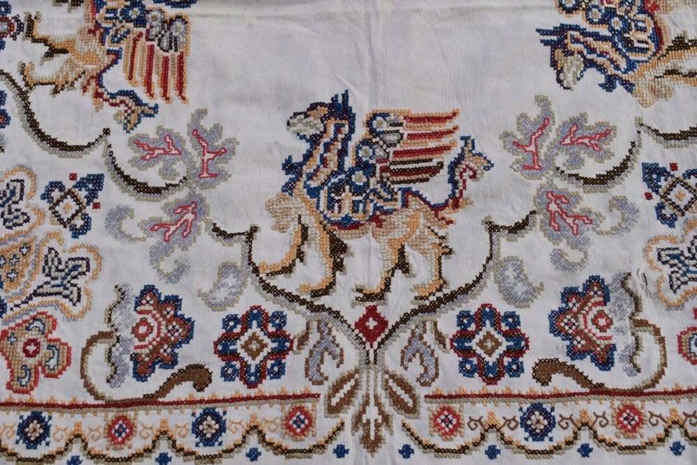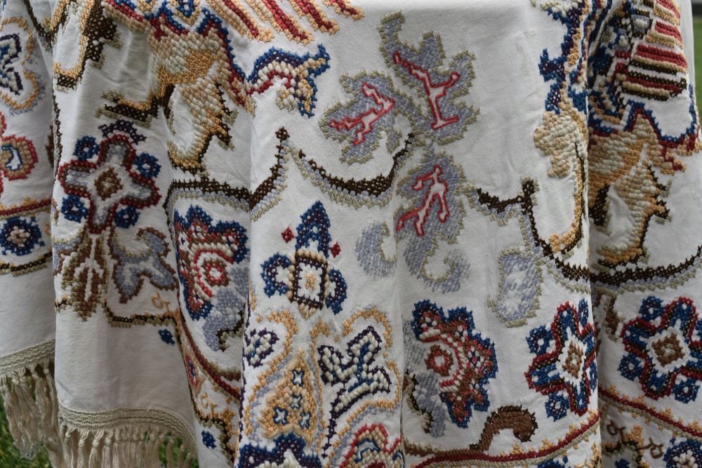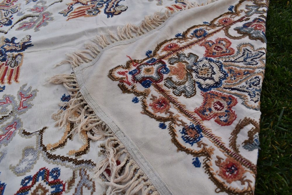 Na kolejnej aukcji mam do zaoferowania Państwu niespotykany, wykonany z bawełny ręcznie wyszywany, stary obrus / narzuta.