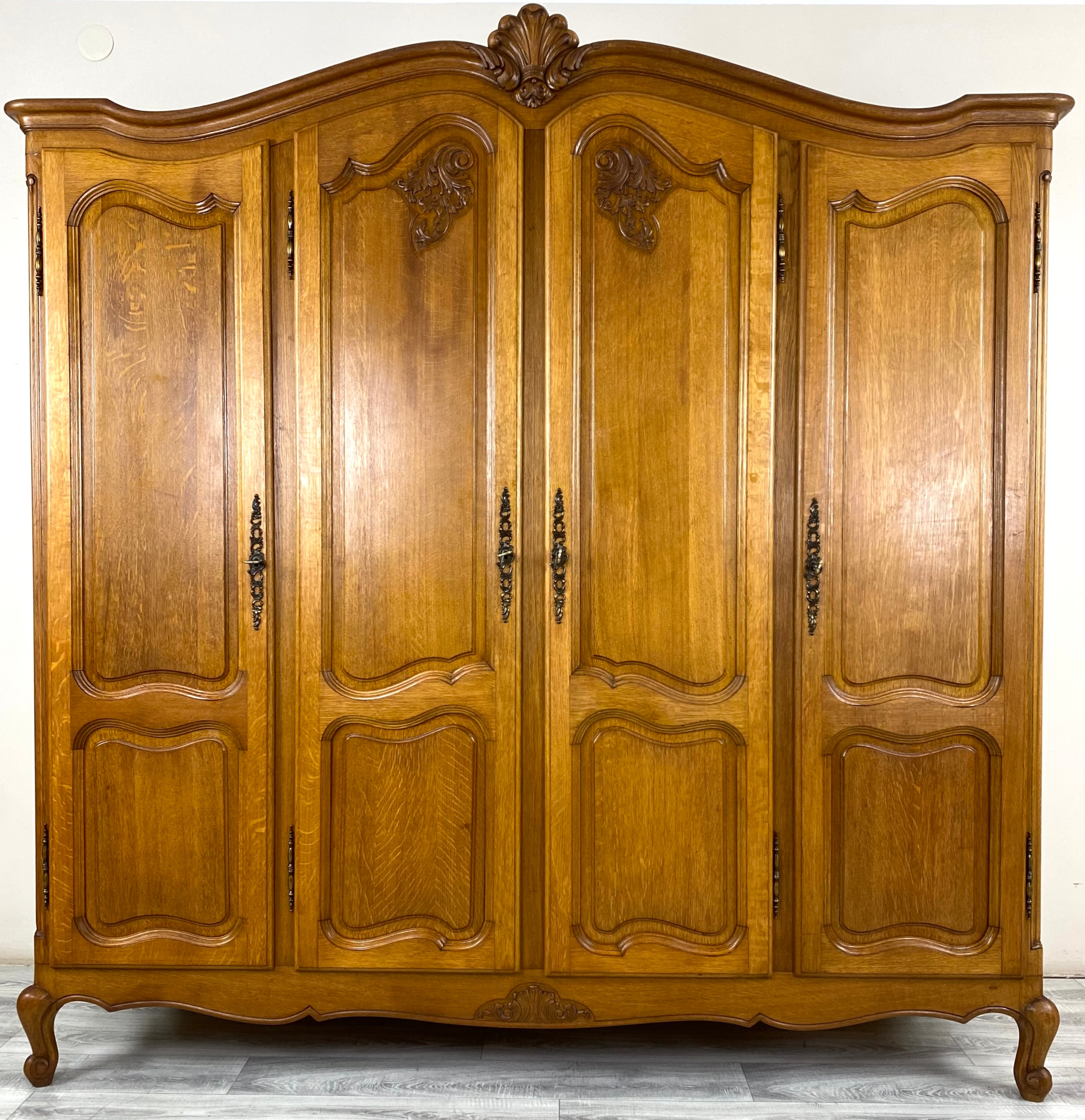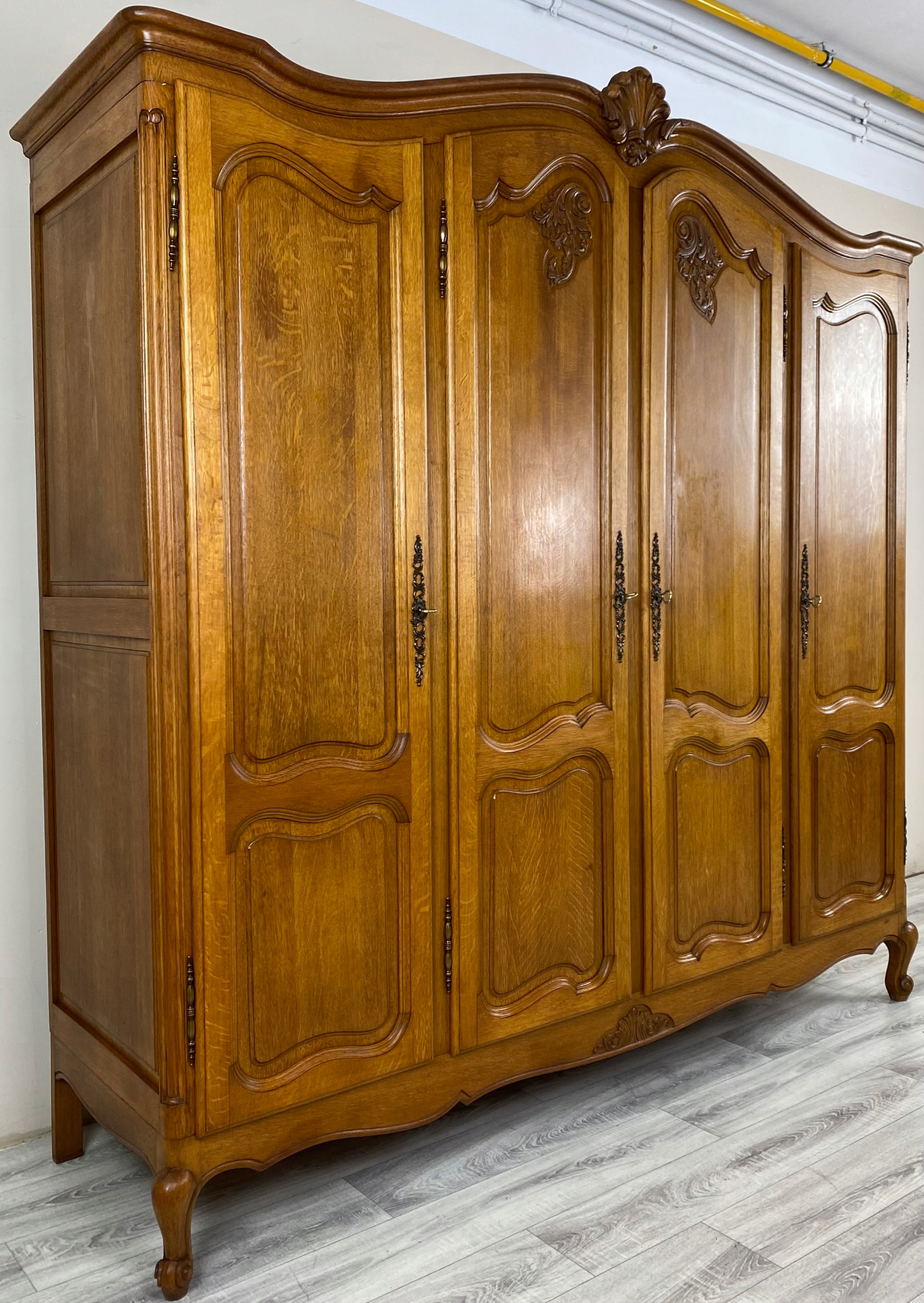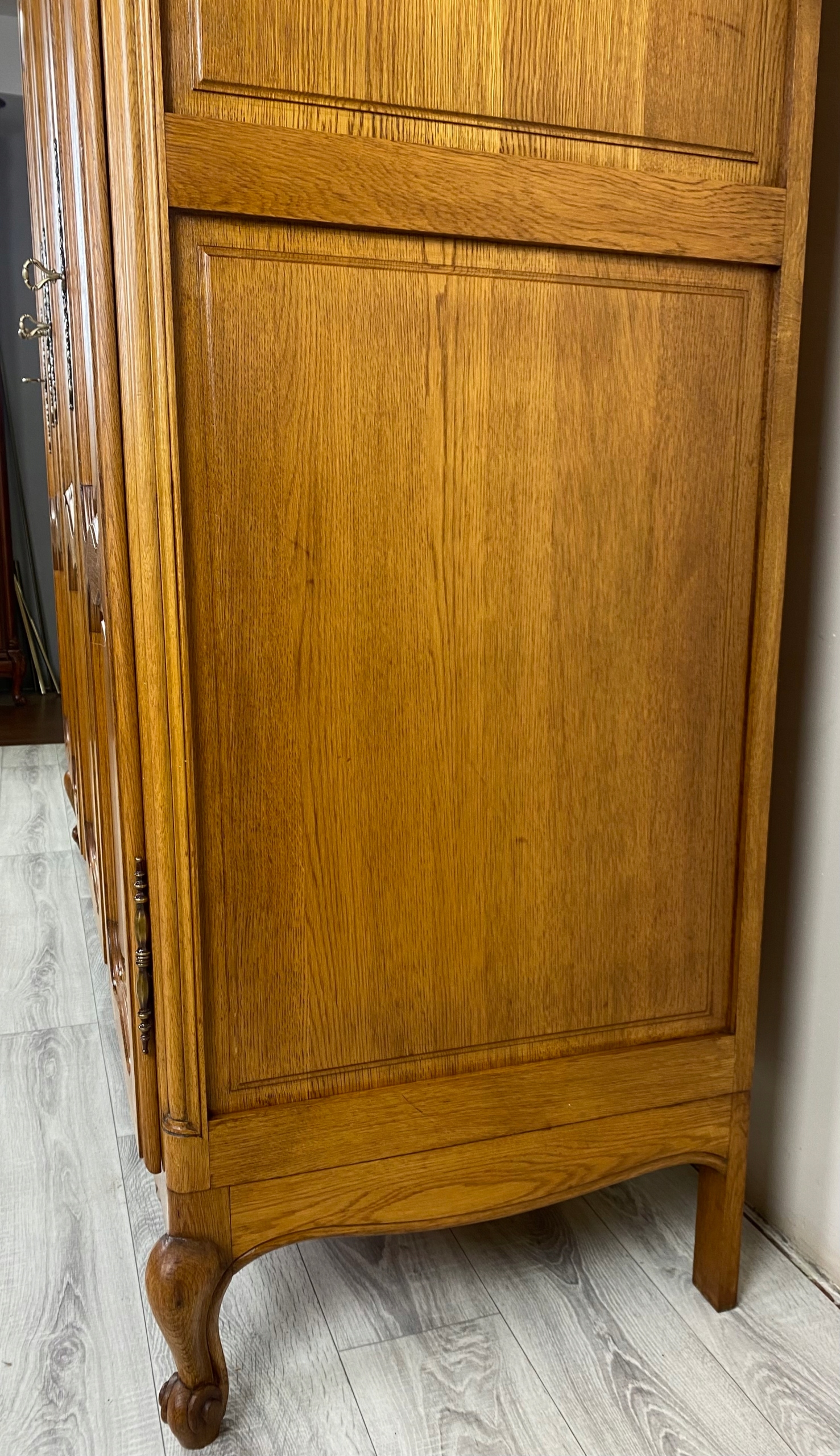 Szafa czterodrzwiowa wykonana z litego oraz fornirowanego drewna dębowego.