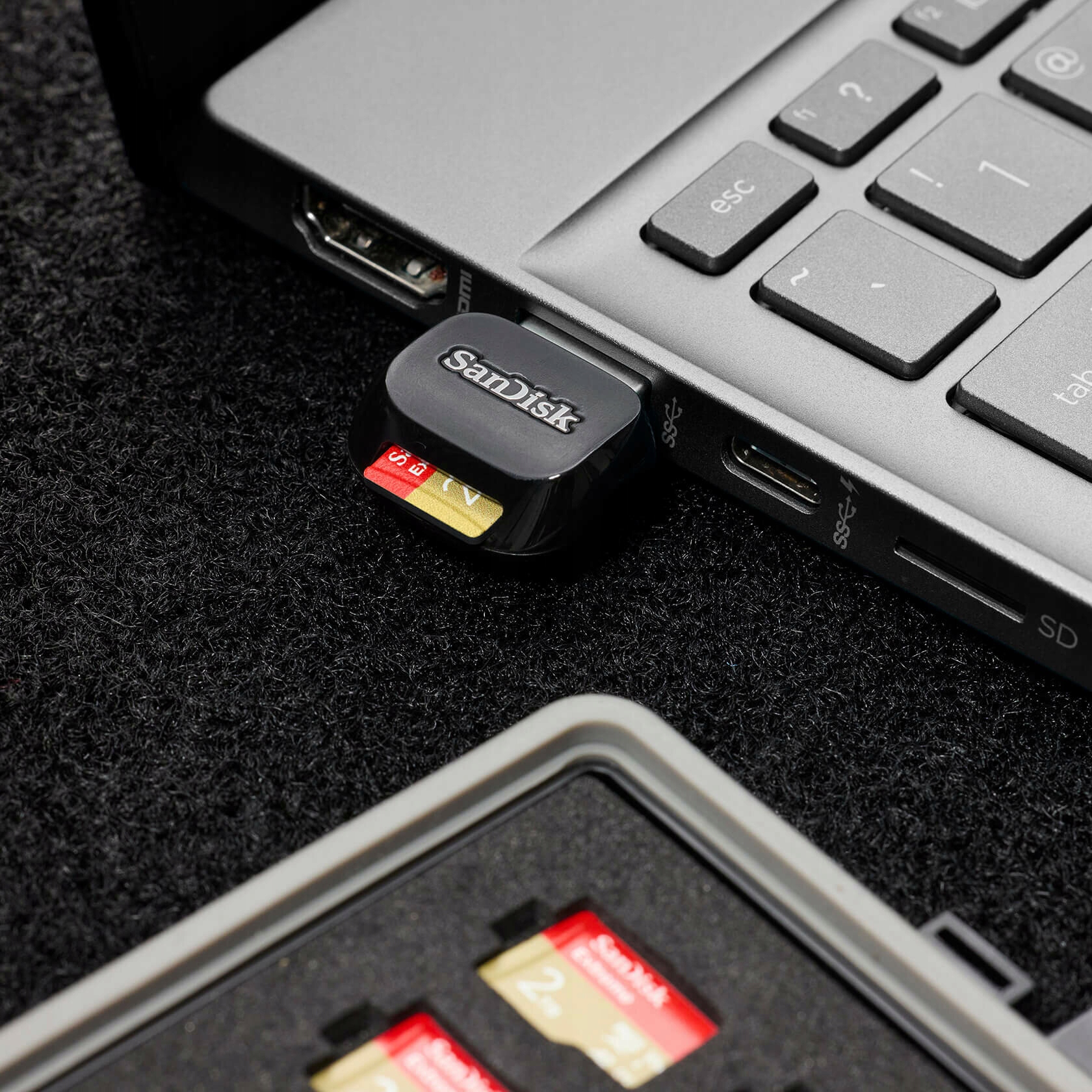 W branży twórców każda sekunda się liczy. Przy tak dużej ilości czasu zainwestowanego w nagrywanie w celu uzyskania optymalnego efektu za pomocą lustrzanki cyfrowej lub aparatu bezlusterkowego, oszczędność czasu jest niezbędna. Zanurz się w przyszłość transferu danych dzięki czytnikowi kart SanDisk QuickFlow™ microSD™ UHS-I USB-A, naszemu najszybszemu czytnikowi kart microSD™ UHS-I. Błyskawicznie przesyłaj tysiące zdjęć w formacie RAW o wysokiej rozdzielczości wykonywanych w trybie zdjęć seryjnych oraz godziny materiałów wideo jakości 4K UHD1. Stworzony z myślą o nowoczesnym twórcy; dzięki kompaktowemu rozmiarowi z łatwością mieści się w torbie na aparat. Jego interfejs USB Type A 3.2 Gen 1 obsługuje także gniazda Type A 2.0 i 3.0. Czytnik kart SanDisk QuickFlow™ microSD™ UHS-I USB-A, będący istotną częścią przepływu pracy, pomaga zmaksymalizować szybkość, dzięki czemu można błyskawicznie rozpocząć procesy postprodukcji zdjęć i plików wideo.