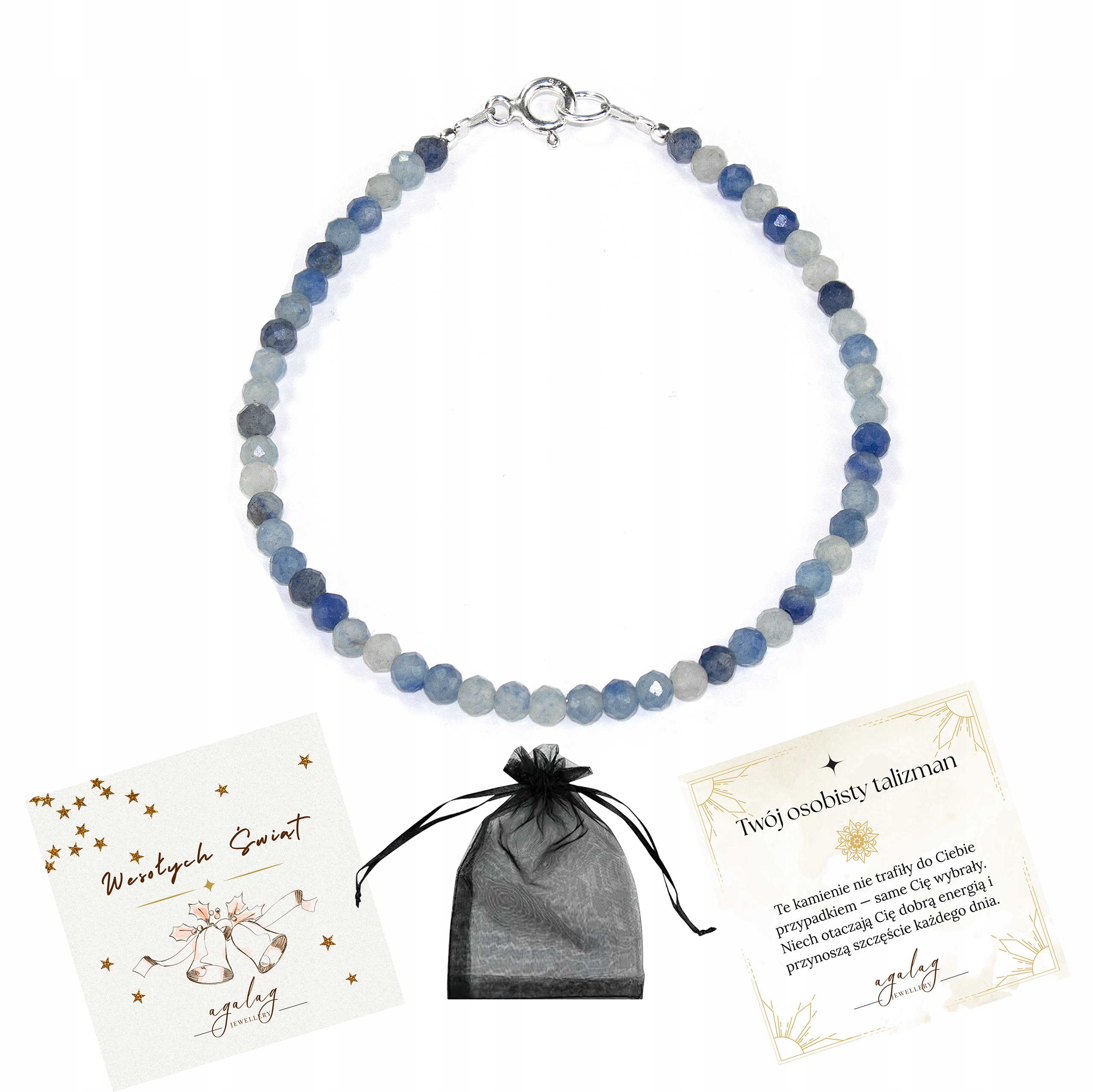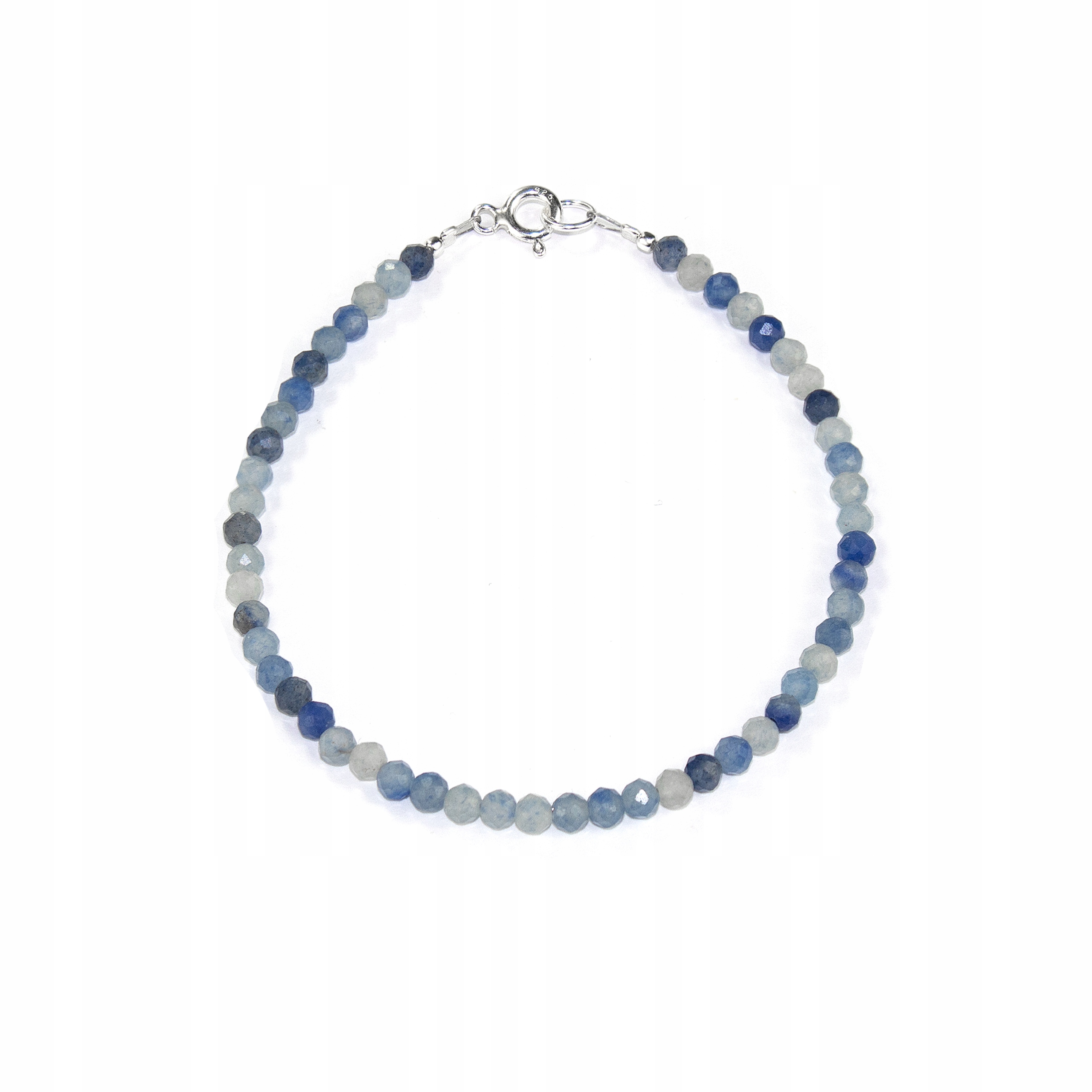 Bransoletka wykonana z naturalnych awenturynów niebieskich w formie fasetowanych kulek o średnicy 3 mm. Dzięki fasetowaniu kamienie delikatnie połyskują w świetle, dodając całości elegancji i lekkości.