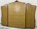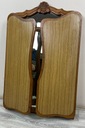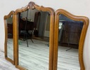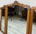 Lustro składa się z trzech tafli – jednej większej, środkowej i dwóch mniejszych, bocznych, które są ruchome dzięki zawiasom. Taki układ umożliwia wygodne ustawienie skrzydeł pod różnym kątem, co pozwala zobaczyć odbicie z kilku perspektyw jednocześnie – rozwiązanie idealne do toaletki lub garderoby.