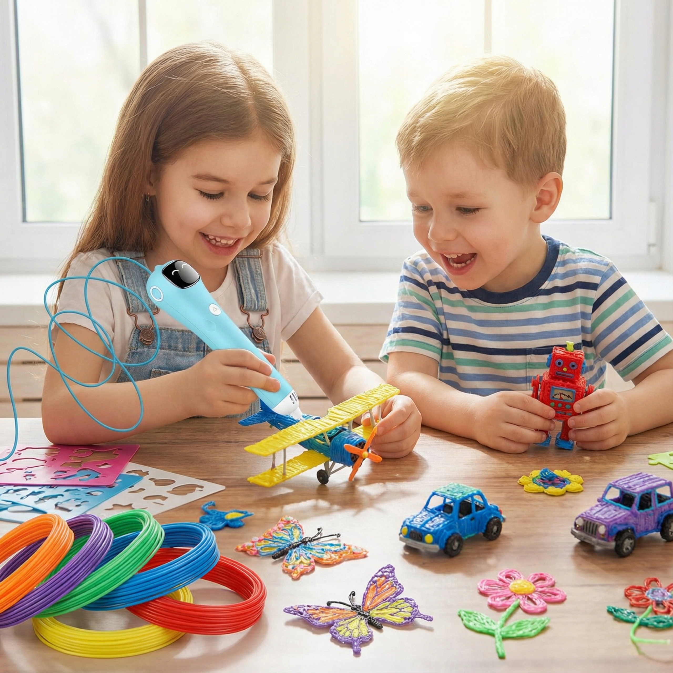 Nasz długopis 3D to prawdziwy przełom — pozwala dzieciom w łatwy i przystępny sposób tworzyć trójwymiarowe obrazy, dekoracje i przedmioty. Technologia 3D, która kiedyś była zarezerwowana dla drogich i skomplikowanych drukarek, dziś trafia w ręce najmłodszych twórców. Zamiast tylko rysować — dziecko może budować swoje pomysły w przestrzeni i obserwować, jak ich wizje stają się rzeczywistością.