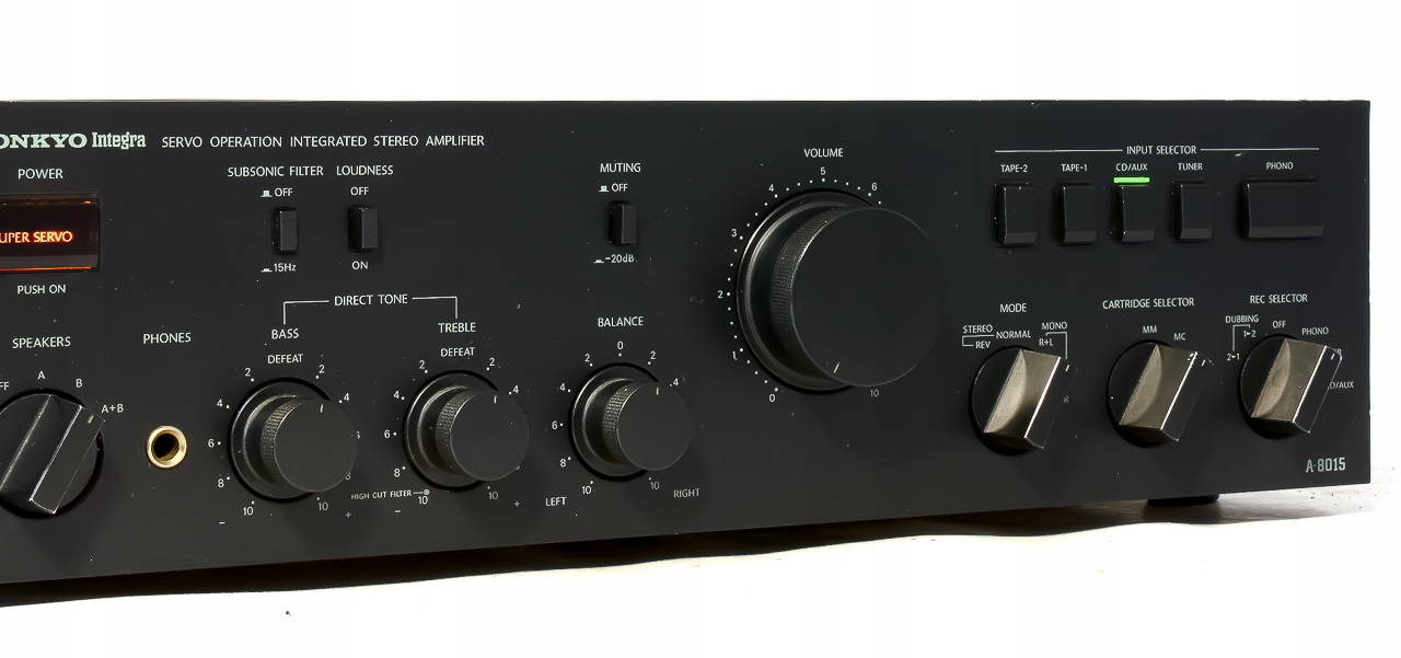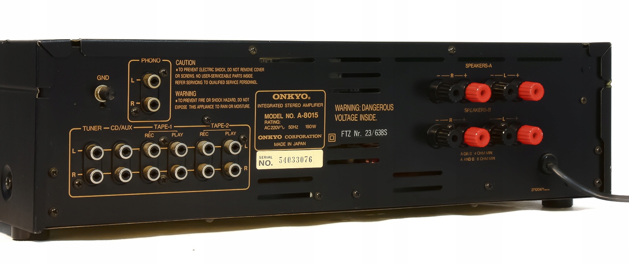 Do sprzedania solidny wzmacniacz firmy Onkyo model A-8015. Jest to jednostka o sporej mocy i świetnym brzmieniu. Pozwala podłączyć i napędzić niemal każdy, nawet wymagający zestaw kolumn. Znakomita stereofonia i odzwierciedlenie pełnej sceny muzycznej z wszystkimi detalami, tu nic nie ujdzie uwadze słuchacza jednym słowem bardzo dobry wzmacniacz. Jeśli idzie o jakość wykonania to wzmacniacz jest masywny, w zasilaniu mamy potężne kondensatory o pojemności 30 000 uF i wielkie trafo, w stopniu mocy oryginalne tranzystory Sankena, wysokiej klasy przedwzmacniacz gramofonowy z opcją wyboru czułości (typu wkładki), panel przedni wykonano z aluminium, gałki regulacji również, do tego funkcja Loudness, selektor źródeł nagrywania, z tyłu solidne terminale głośnikowe. Polecam!