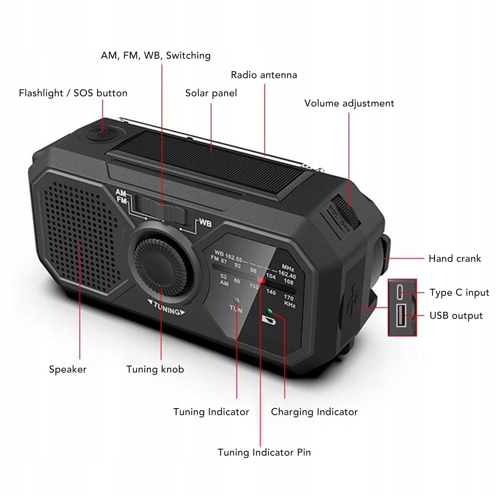 Specyfikacja: Typ artykułu: Solarna korba ręczna Radio