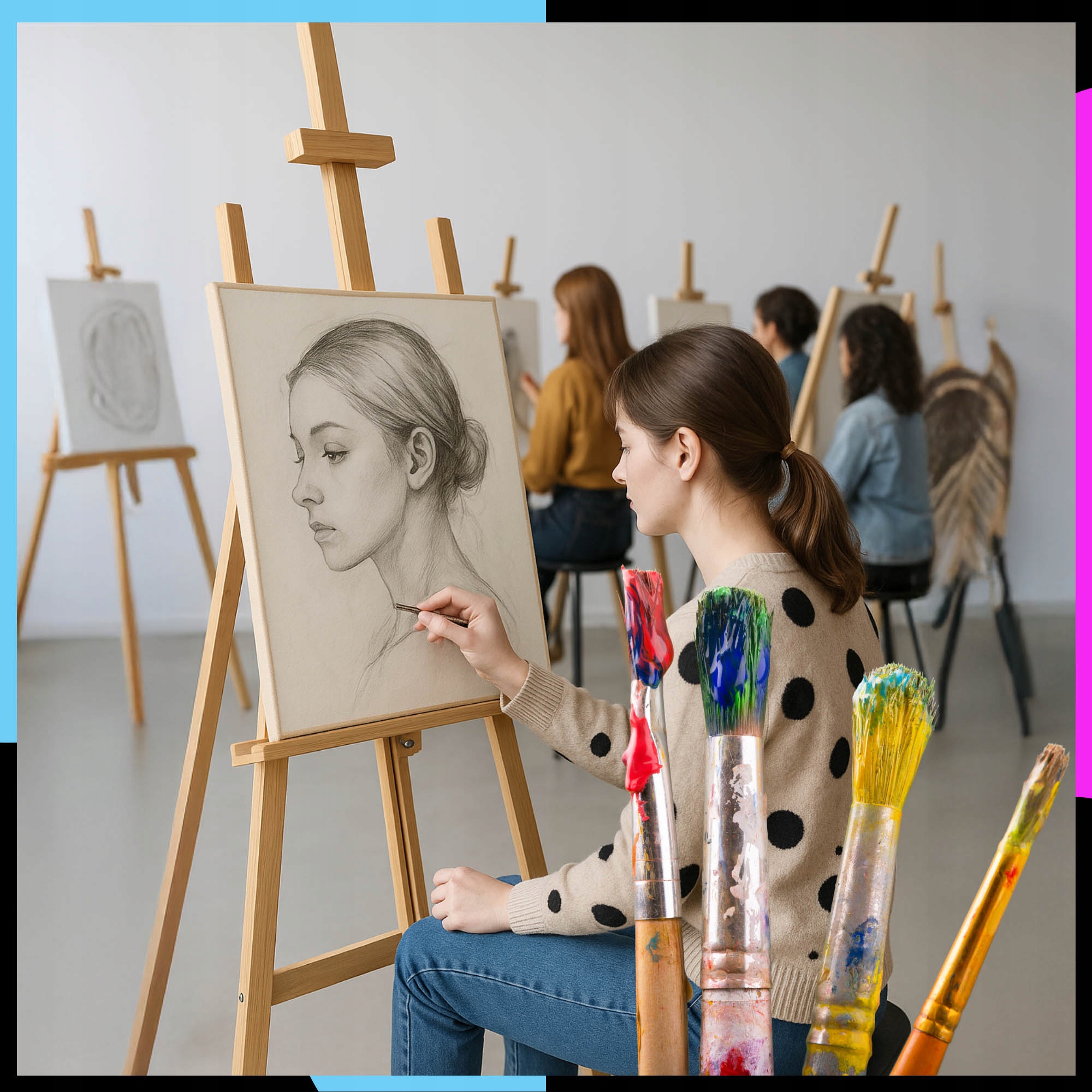 Tak — konstrukcja jest w pełni składana, co pozwala łatwo ją przechowywać i zabierać do pleneru, szkoły, na kursy czy warsztaty artystyczne.