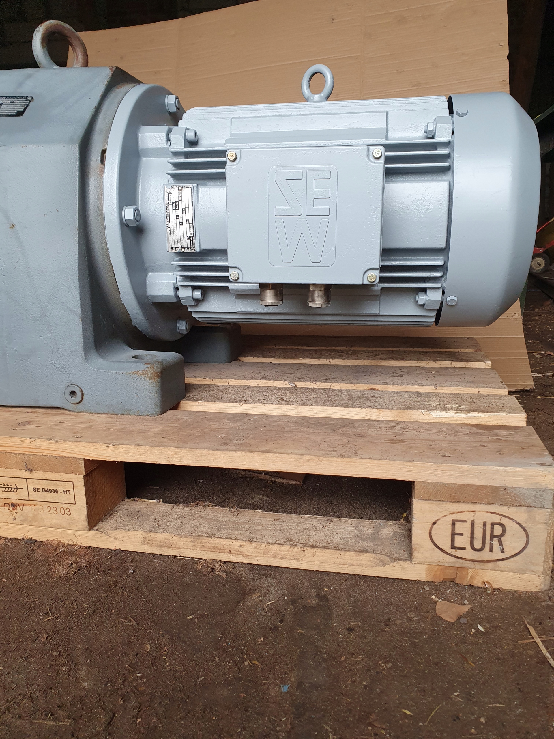 Sprzedam motoreduktor SEW 18,5 KW. 38obr/min. Sto procent sprawny cicha praca jak nowy. Średnica wałka napędowego 90mm. Długość motoreduktora 1160mm .Wysokość 480mm. Szerokość 460mm. Wysokość od podstawy do środka wałka 265mm. Możliwość wysyłki.