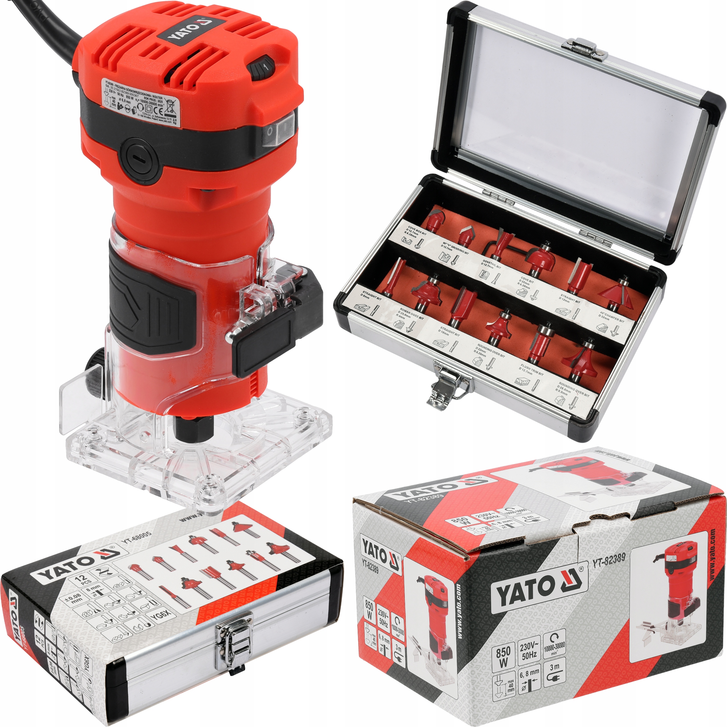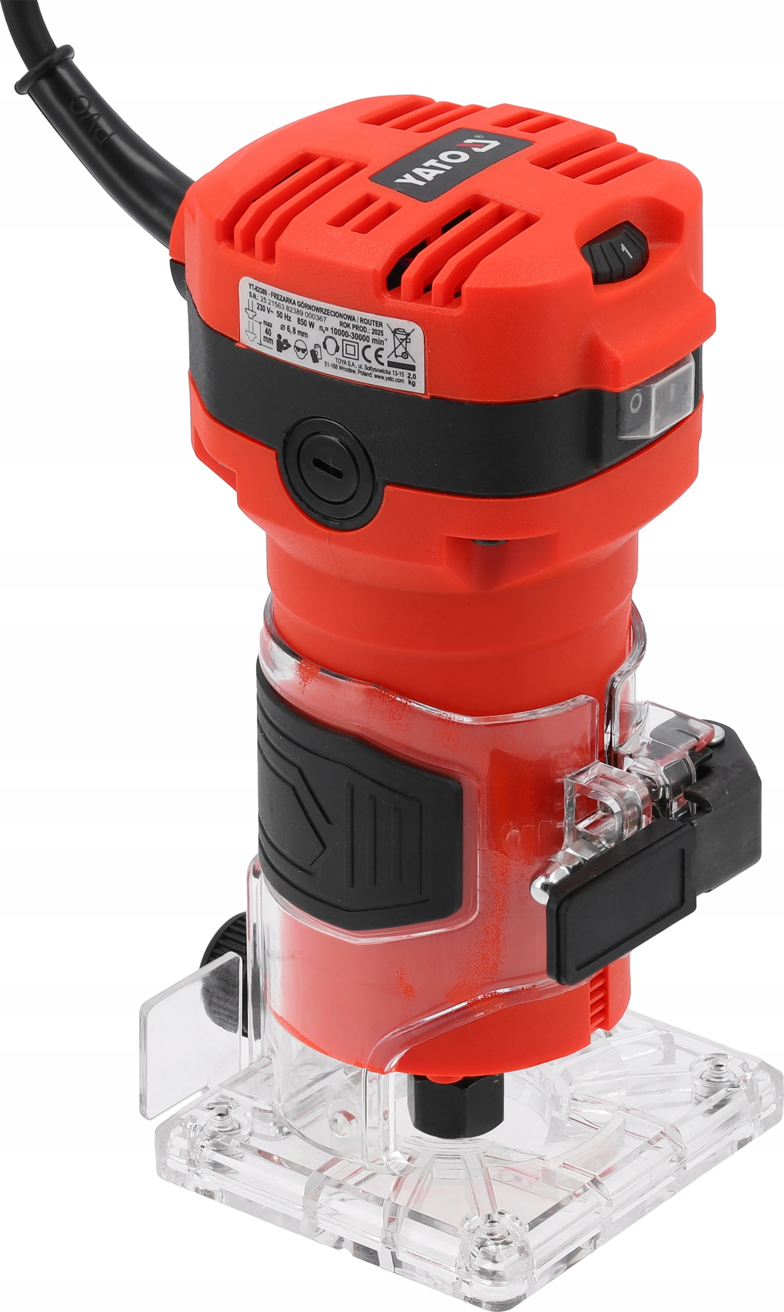 Urządzenie wyposażono w silnik o mocy 850 W, który zapewnia płynną i stabilną pracę w szerokim zakresie obrotów od 10000 do 30000 min⁻¹, umożliwiając dostosowanie prędkości do obrabianego materiału i frezu.